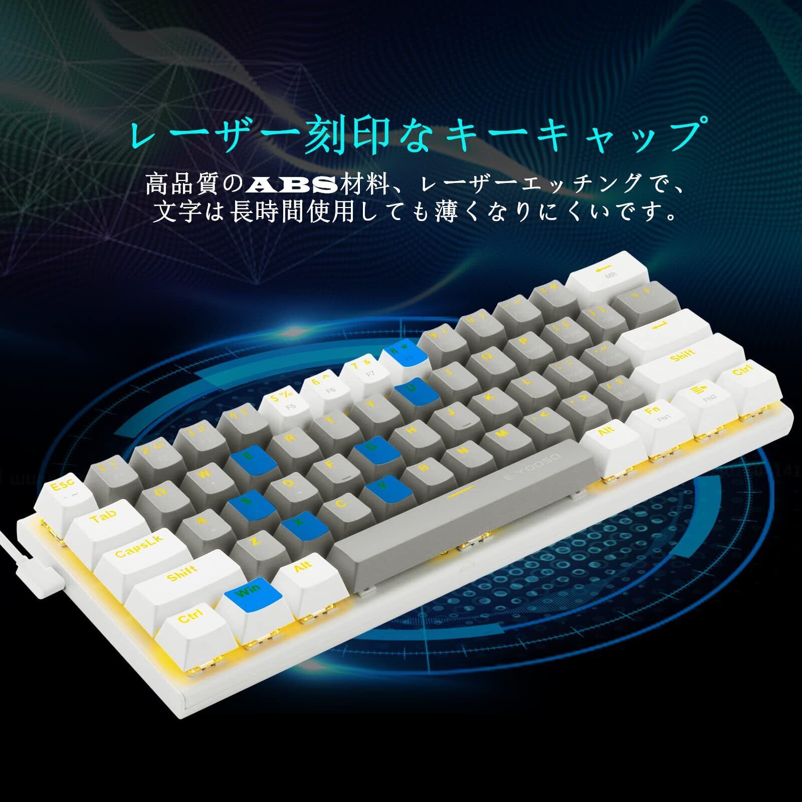 【新春セール】e元素メカニカルキーボード61キー 赤軸を採用のゲーミングキーボード 黄色のLEDバックライト付き 60%小型コンパクトキーボード USB有線英語配列 Windows/Macに対応ゲーム用キーボード (グレー+ホワイト,赤軸) | lcsshop
