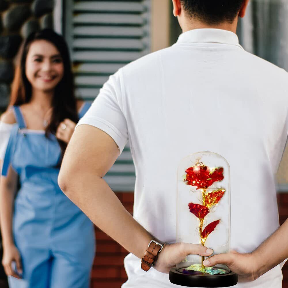 【花は永遠に色褪せない、ガラスドーム設計、電池式】バラの造花は決して色褪せたり、消えたり、枯れたりすることはありません。透明なガラスドームは、バラの魅力をはっきりと見せてくれます。花の内部のディテールは柔らかな照明とともにはっきりと浮かび上がります。暖かい光とともに、無限の美しさと希望をお届けします。LEDライトは単4電池3本で駆動し、コードレスで持ち運びに便利です。花の直径:11cm/4.33"; 高さ:22cm/8.66"。ご注意:電池はパッケージに含まれていません。バッテリーカバーをスムーズに取り外すためのドライバーは付属していません。ガラス製品! 軽く持って、落とさないようにご注意ください!