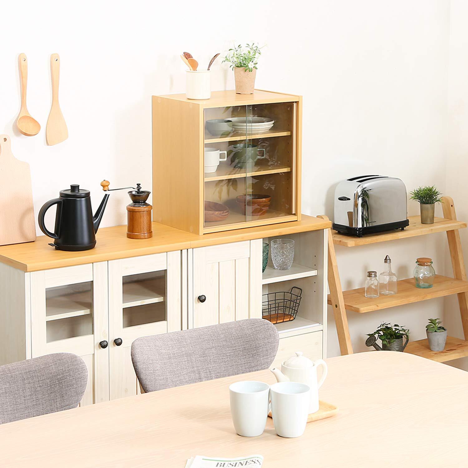 不二貿易 食器棚 キッチン収納 幅43×奥行29×高さ44cm ナチュラル ガラス扉 可動棚 組立品 81908