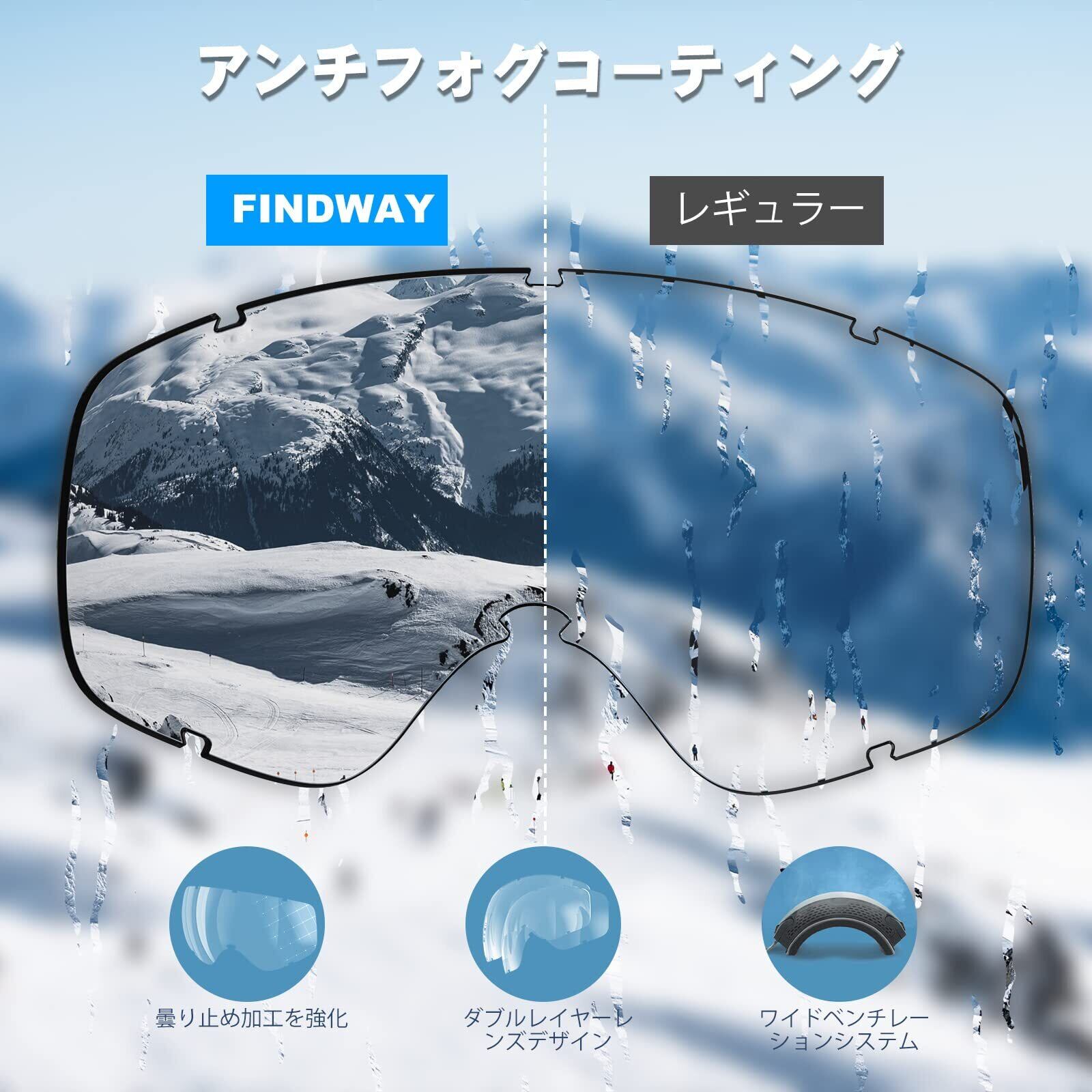 [Findway] スキーゴーグル スノーゴーグル スノーボードゴーグル アップグレードOTG広視野球面レンズ 防風/防雪/曇り防止 紫外線防止 メガネ対応 軽量と耐衝撃 適用大人男女の登山またはスキー用のスポーツゴーグル
