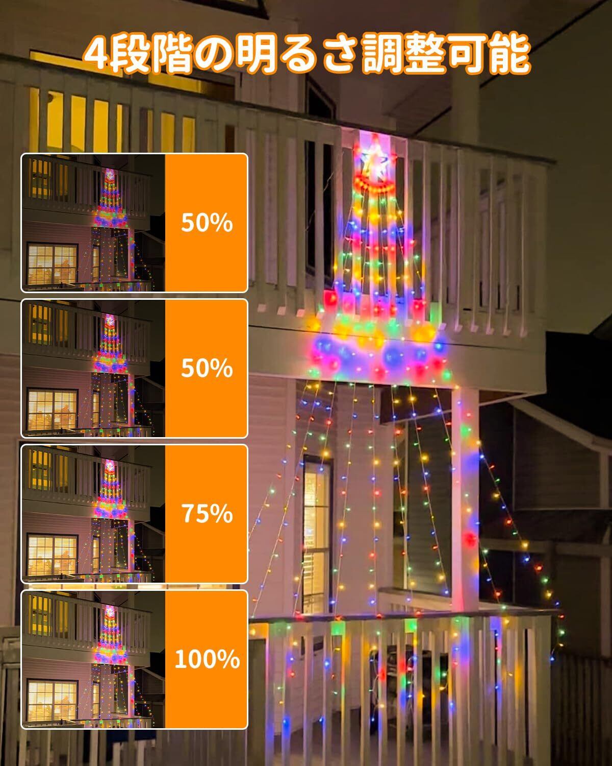 【使いやすく便利なリモコン操作】全8種類の点灯モードがありますので、「Mode」ボタンを押すだけで、点灯モードを簡単に切り替えが可能です。パーティー、祝日に暖かい雰囲気を作成、美しい光が広がります、お庭や玄関、お店やショッピングマーケットの扉、ベッドや壁、部屋をお好きなように演出できます。ソーラーパネルにリモコン受信部があり、付属のリモコンで遠距離操作可能で、一回ずつ押すと、使用場所や目的に合わせて8種類の点灯パターンをお手軽いに変更できます。クリスマス、ガーデン、結婚式、パーティー、キャンプ、ハロウィン、ホテル、バー、店舗、寝室、玄関、庭、壁、舞台、学校、ショッピングモール、披露宴ツリーなどの装飾としては大活躍です。