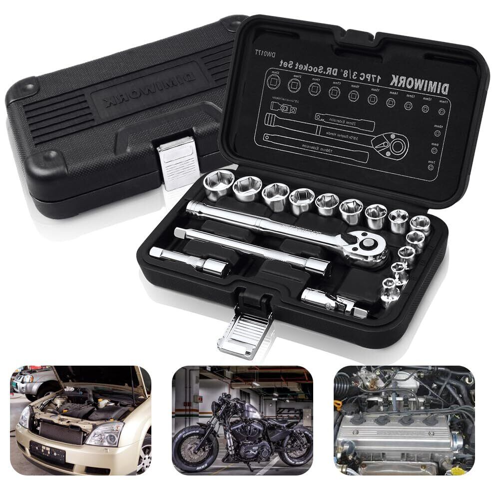 ソケットレンチセット 17点 車レンチ スリーブ ラチェットレンチ 差込角9.5mm(3/8インチ) ラチェットハンドル 六角レンチ 車/バイク/DIY 工具セット 収納ケース付き