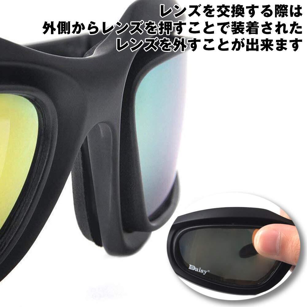 [KAKIZAKI] バイク用 サングラス ゴーグル 自転車 スポーツ 防風 紫外線カット (本体フレーム レンズ4種 メガネ拭き 収納ケース)