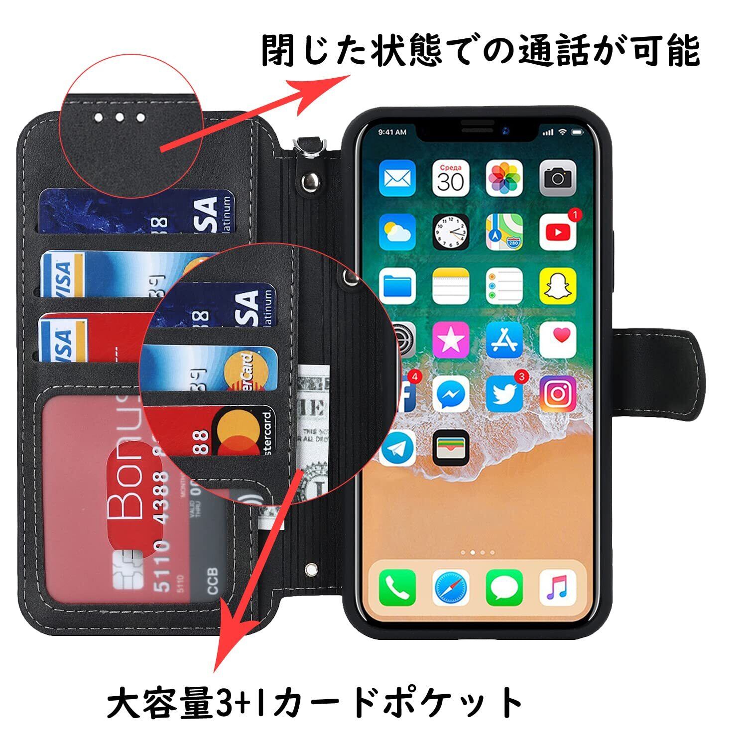 Havaya iPhone XS ケース iphone x ケース iphoneXスマホケース 米軍MIL規格 軽薄 手帳型 ストラップ 耐衝撃 レンズ保護(アイフォンX/あいふぉんXS/いphone10/アイホン10s 5.8インチ対応)-ブラック