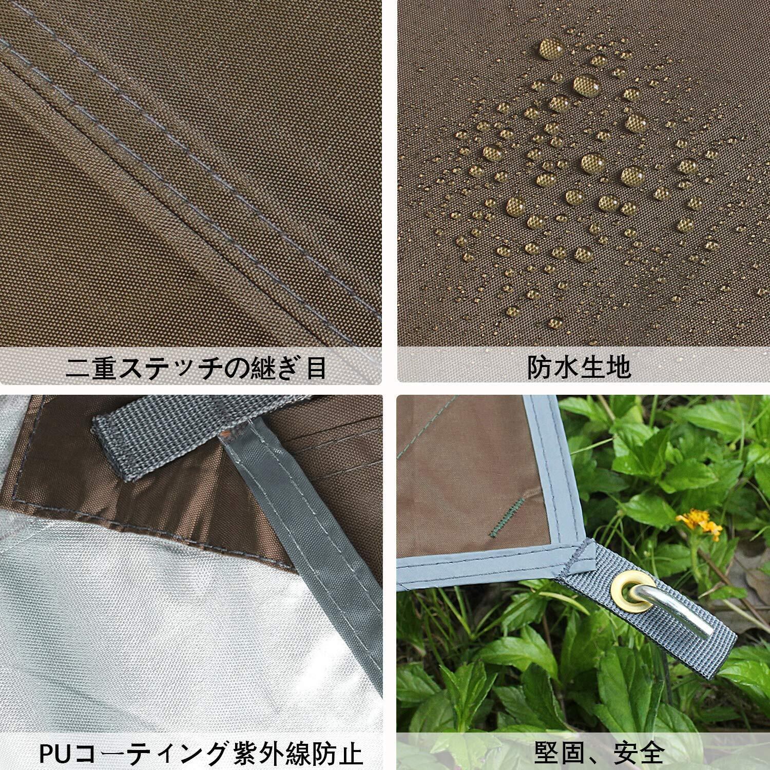 製品仕様:「サイズ 」M:220*240cm、収納サイズ:31*19cm;L:300*300cm、収納サイズ:31*19cm;XL:300*400cm、収納サイズ:36*21cm;XXL:300*500cm、収納サイズ:40*24.5cm;「材質」 210Dオックスフォード生地+シルバーコーティング;耐水圧:3000mm