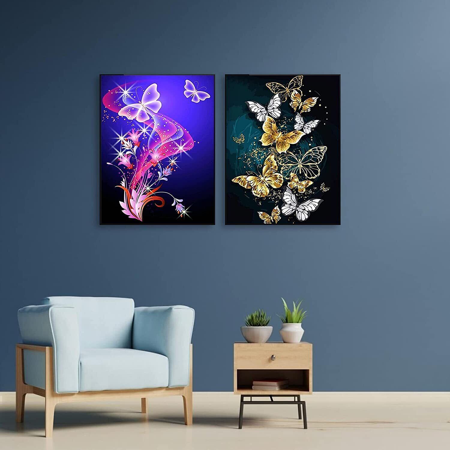 2枚セット 5Dダイヤモンドアート キット ダイアモンドビーズ絵画キット DIY・手作り絵画手芸キット 5D モザイクアート ハンドメイド かわいい 芸術品 装飾 ダイヤモンド塗装 全面貼り付けタイプ 30x40cm(蝶)