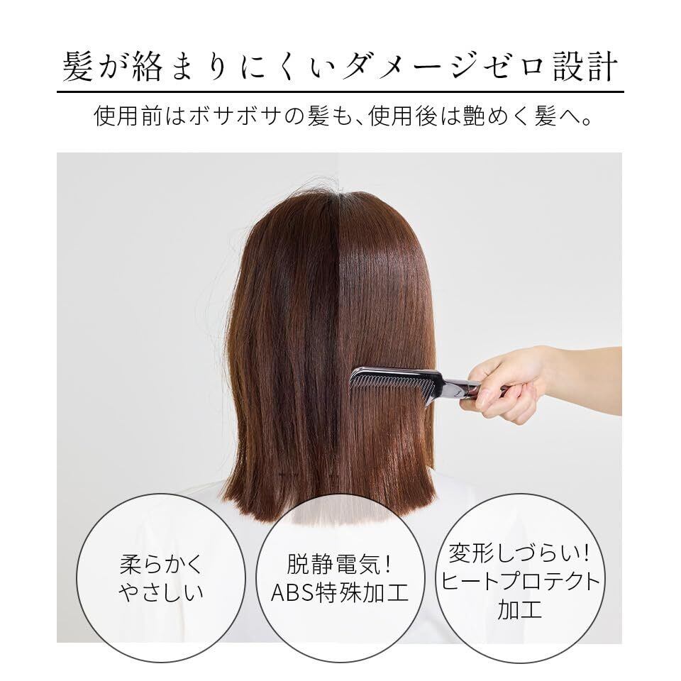 【表面特殊加工】くしの表面にABS特殊加工を施しているため、くしの抗菌性が向上。さらに、静電気を限りなく軽減し摩擦による髪ダメージを防ぎます。