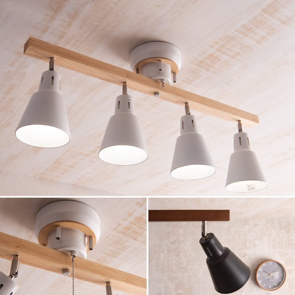 Point 2.【シックでスタイリッシュなモノトーンカラーでバランスの良い空間に】 Point 3.【好きな向き、照らしたいところにだけ光を放つ】 向きが自由に調整できるライトは、スポット的に照らしたい部分にだけ光を当てることができます。お気に入りの絵や作品など飾ってあるものを照らしてみたり、薪ストーブを照らしてみたり、ローテーブルやソファーを照らしてみたり・・・一つのお部屋でも暗いところと明るいところができるため、奥行きのある、シャレた空間ができます。一般的なスポット照明は、本体フレームの向きが調整できないものが多いですが、当商品は好きな向きに調整可能です。シーリングカバーにある回転用溝があり、木製のバーは好きな向きに調整することができます。ランプシェードは、手動でくるくると360度回転できます。首部分も床に対して垂直から約90度まで傾けられるので、ほぼ希望通りの角度に合わせることができ、照らしたい場所もピンポイントで照らすことができます。※照らされたポイントが全体より強調された明るさになりますが、部屋全体も明るくなります。