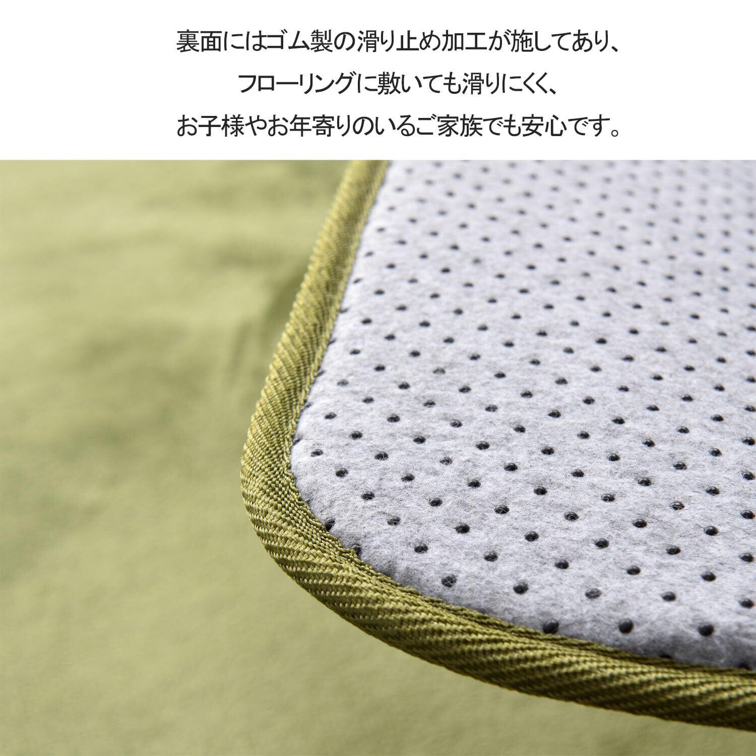 【通気性が良い】このラグマット1.5畳内側の素材は、通常のポリウレタンよりも通気性と透水性に優れています、じゅうたん内側のウレタン厚約5mm、暑い夏に座っても蒸れない、通気性優れて。ご家庭で洗濯もでもらぐまっと1.5畳、乾燥時間が短いのも特徴です。