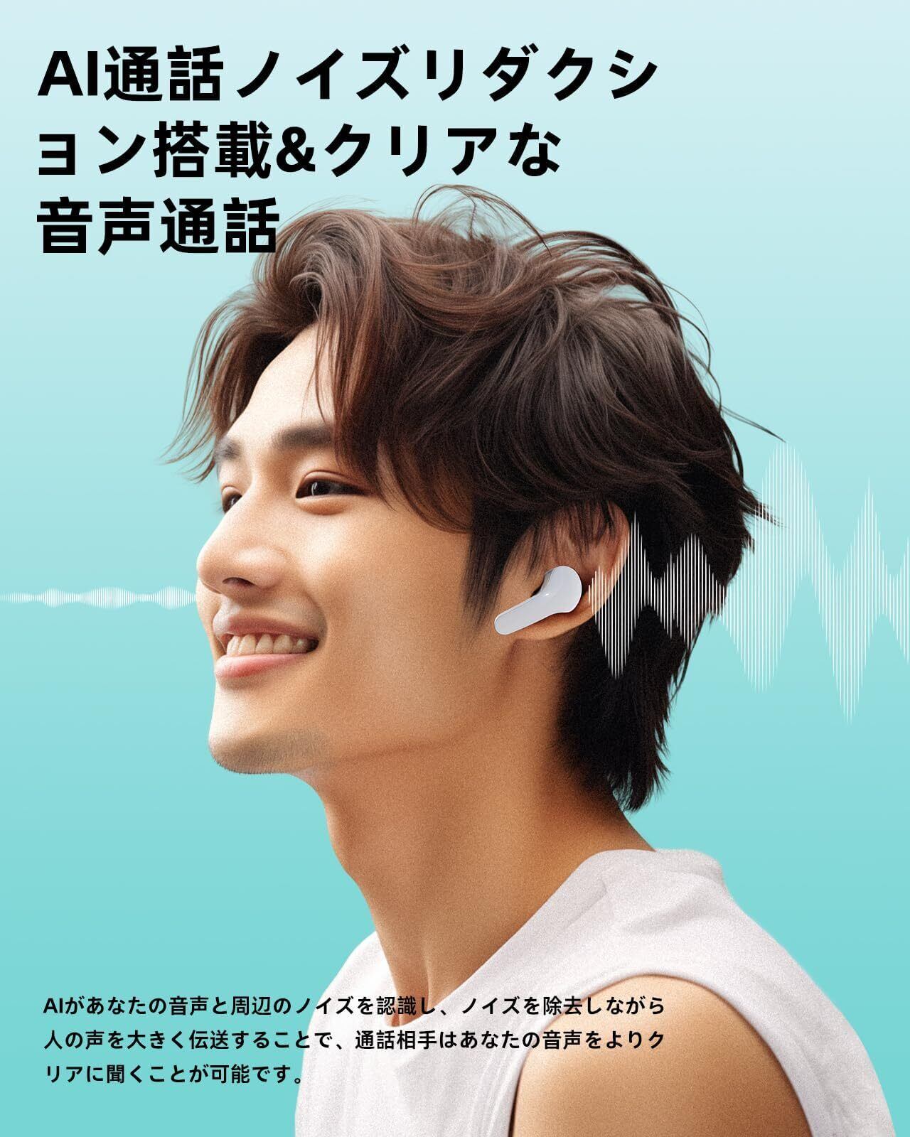 【Bluetooth 5.3瞬時接続&AI通話ノイズキャンセリング+クリアな通話実現】新世代の干渉防止bluetooth5.3は、どんな環境でも恐れない、スムーズに通信できます。障害ものがない場合は、10メートルの受信距離を実現できて、従来の受信距離により大幅に向上します。音楽のデータの転送が高速で、電波が飛び交う満員電車でも飛びや音途切れが起きにくく、遅延が大幅に改善されます。AIノイズリダクション搭載:AIがあなたの音声と周辺のノイズを認識し、ノイズを除去しながら人の声を大きく伝送することで、通話相手はあなたの音声をよりクリアに聞くことが可能です。(※この機能は通話時のノイズを除去する機能であり、音楽を聴くときに周囲の雑音を除去するものではありません)