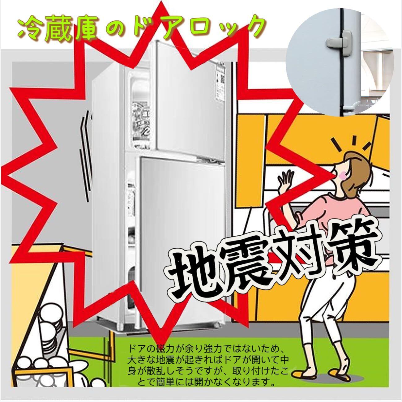 スタイリッシュ 冷蔵庫 ロック 簡単取り付け 地震対策 ドアロック 粘着力が強い チャイルドロック 冷蔵庫 鍵 鍵付き冷蔵庫 安全ロック 鍵 穴あけ不要 後付け鍵 (グレー(1個))