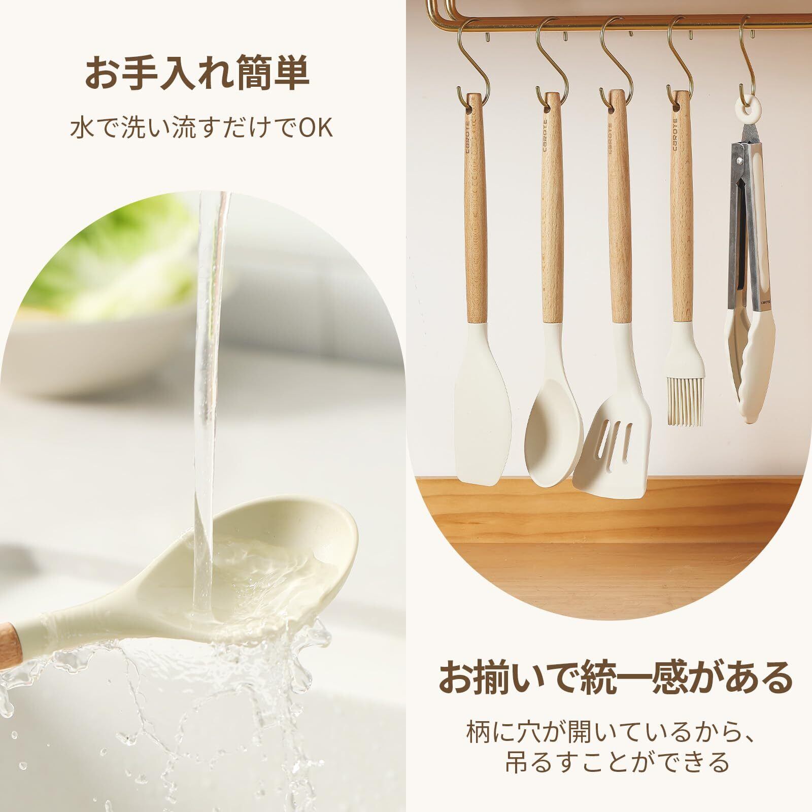 【新着商品】CAROTE カローテ キッチンツールセット9本 シリコン製 調理器具セット フライ返し おたま トング 泡立て器 へら ハケ スプーン浅 ピーラー ツールスタンド 高耐熱性 ベージュ(9点セット) | lcsshop