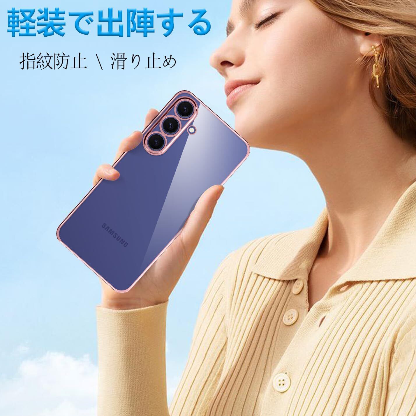 Galaxy S25 ケース クリア SC-51F 耐衝撃 TPU レンズ保護 ソフト 透明 メッキ加工 ワイヤレス充電 ギャラクシーS25 スマホケース ラップホール付き (ローズゴールド)