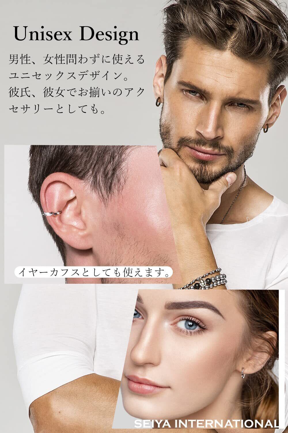[SEIYA INTERNATIONAL] イヤリング メンズ フェイクピアス イヤーカフ ツイストフープ 両耳 2個セット