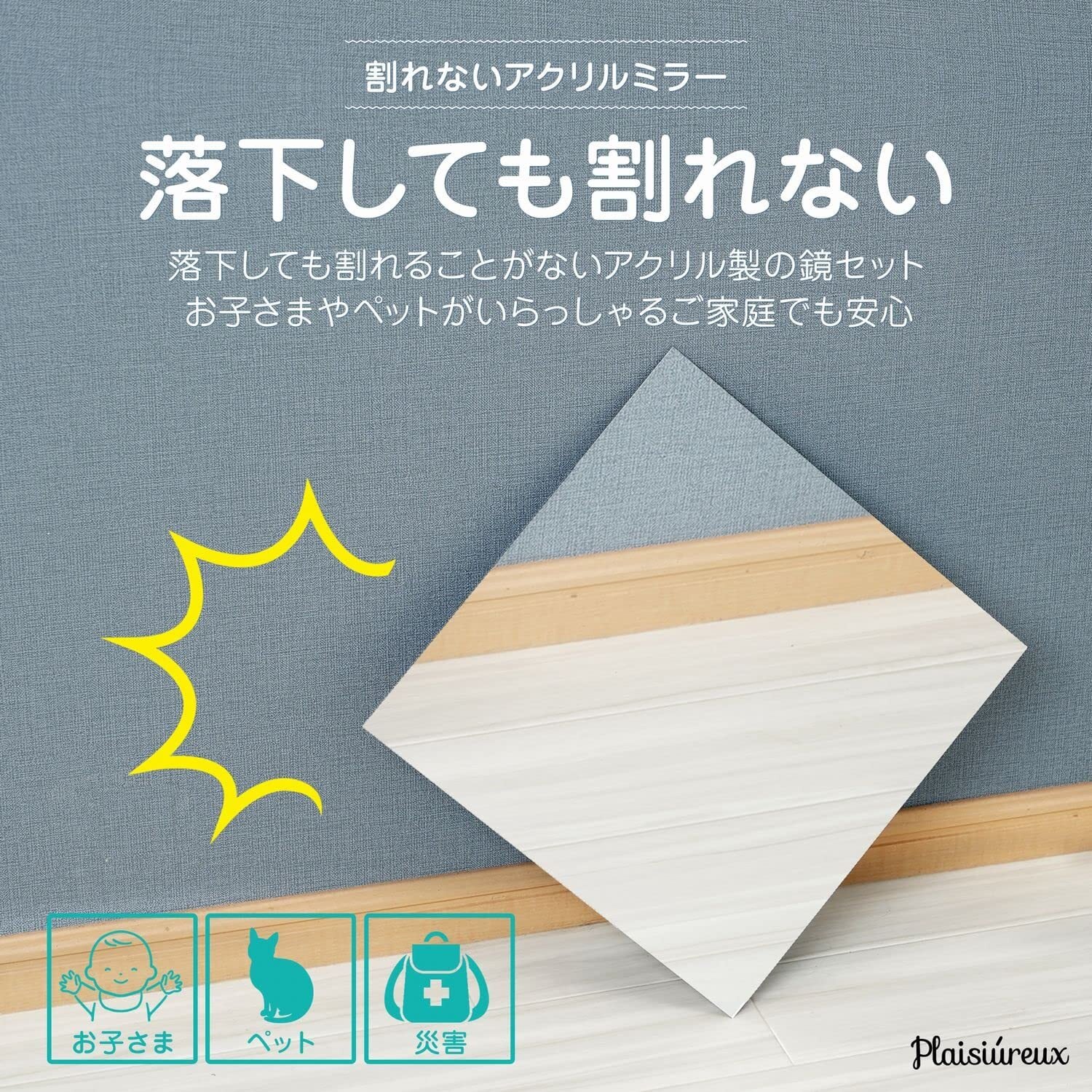 【商品仕様】○サイズ:縦横30cm、厚み約2cm ○セット内容:アクリル鏡5枚、両面テープ 取扱説明書 ○重量:1枚170g ○素材:アクリル ○ブランド:Plaisiureux
