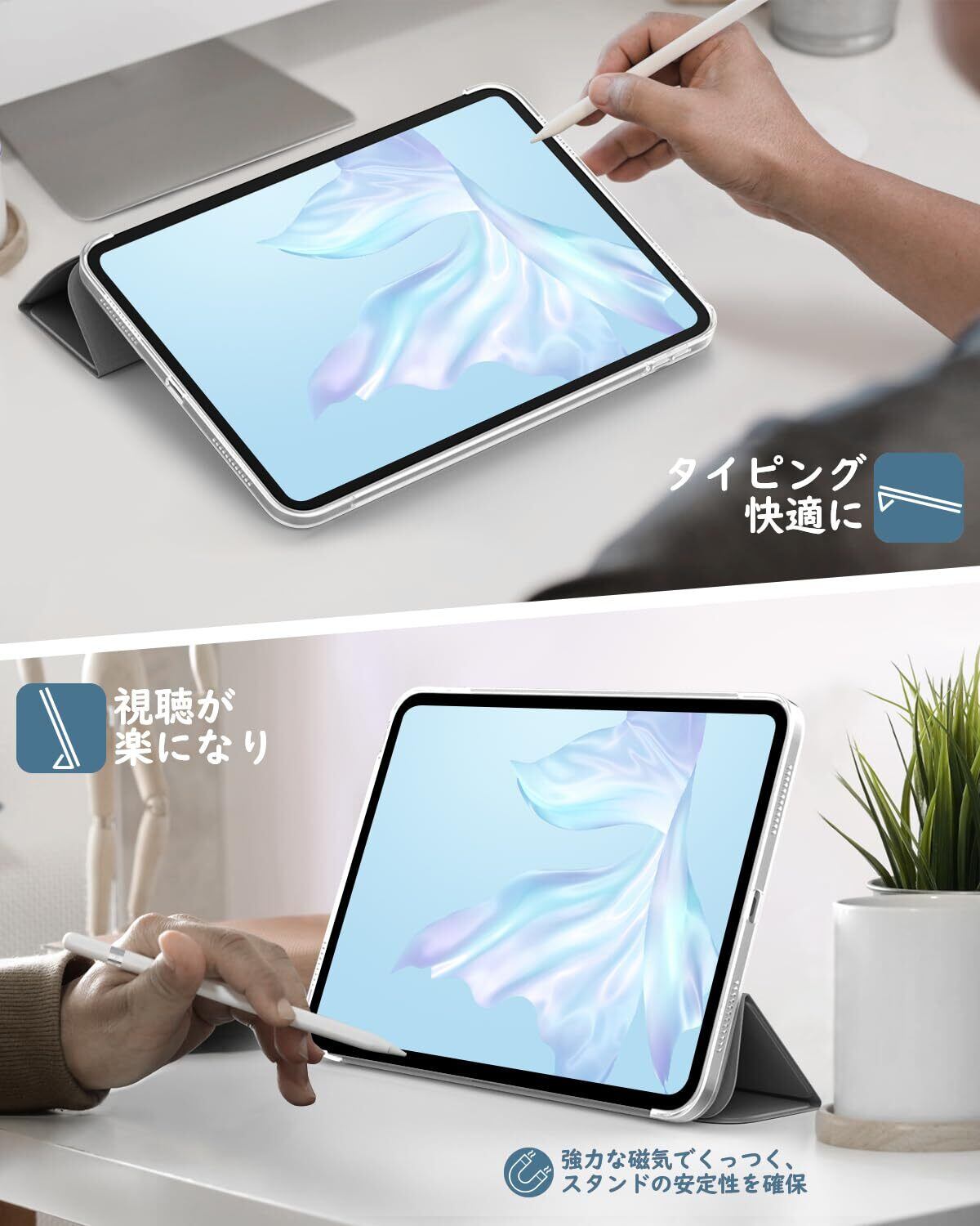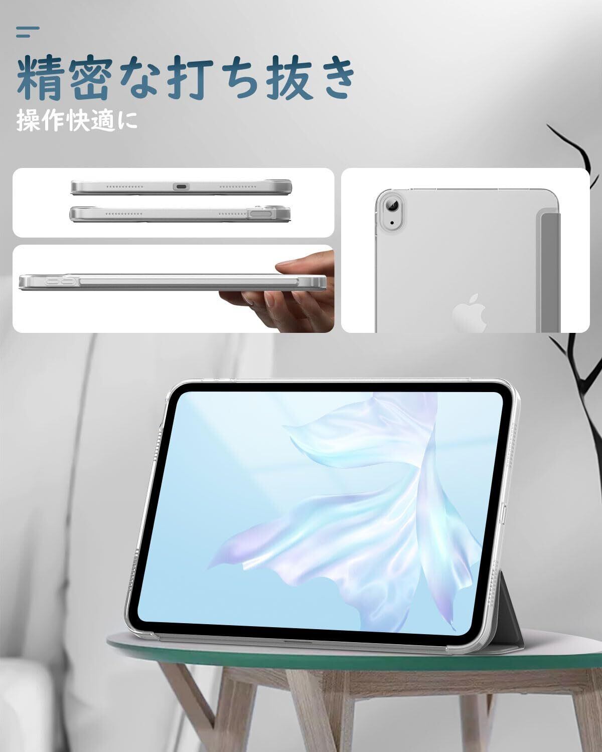 iPad 第10世代 ケース 2022 Dadanism iPad 10 ケース New iPad 10.9 ケース 2022 第10世代 iPad 10.9インチ カバー スタンドケース オートスリープ機能 軽量 薄型 PU+TPU マイクロファイバー裏地 耐久性 Apple Pencilに対応 透明バック iPad 10 カバー 適格請求書発行可 スペースグレー