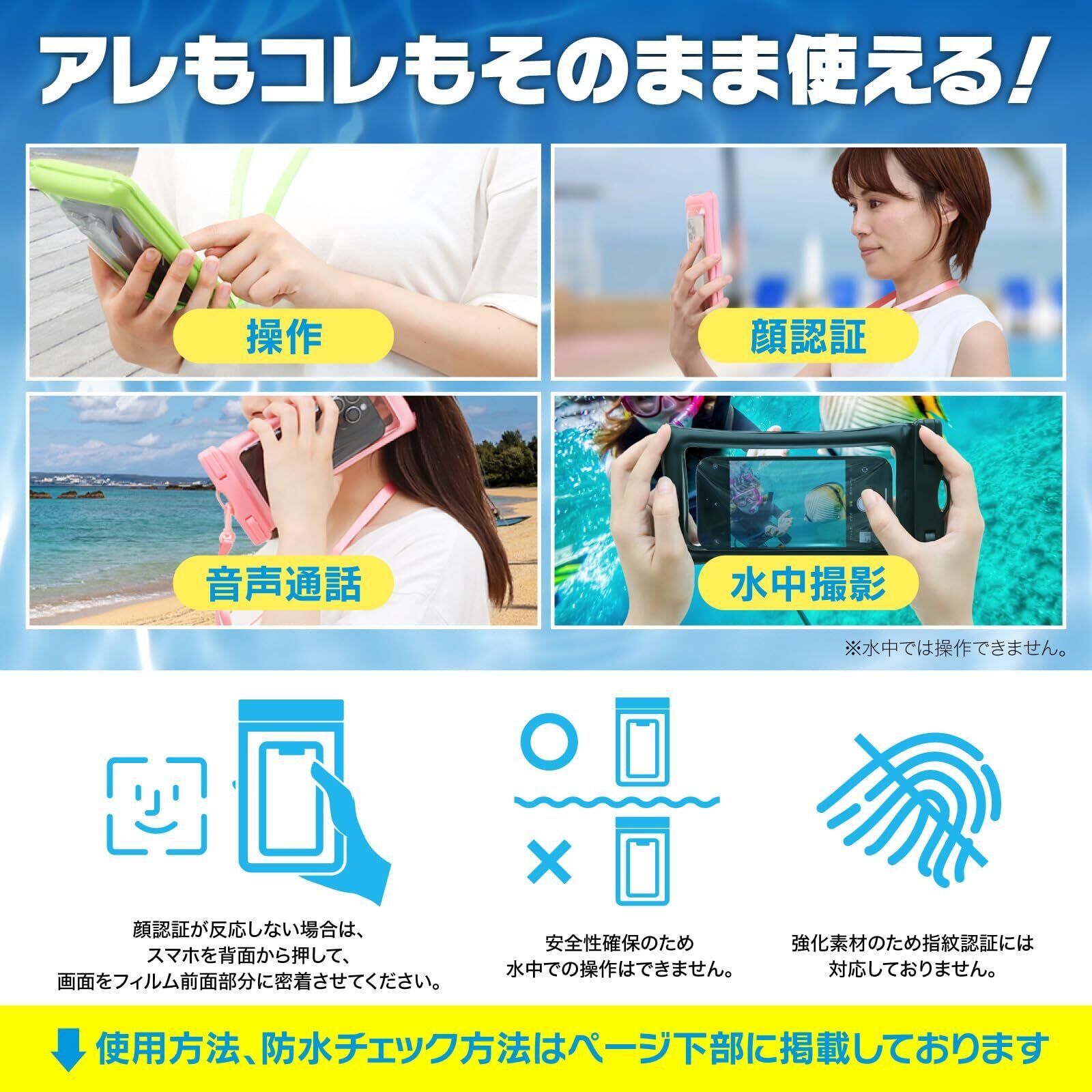 ▶▶▶【使い方・防水テスト方法】使い方等は「掲載動画」「ページ下部の画像」にて紹介しておりますので、ご確認ください。【注意事項】※顔認証が反応しない場合は、スマホを背面から押して、画面をフィルム前面部分に密着させてください。※強化素材のため指紋認証には対応しておりません。※水中での操作はできません。水上でカメラを起動した状態で水中に入れて撮影してください。その他、パッケージ記載の注意事項をよくお読みの上ご使用ください。