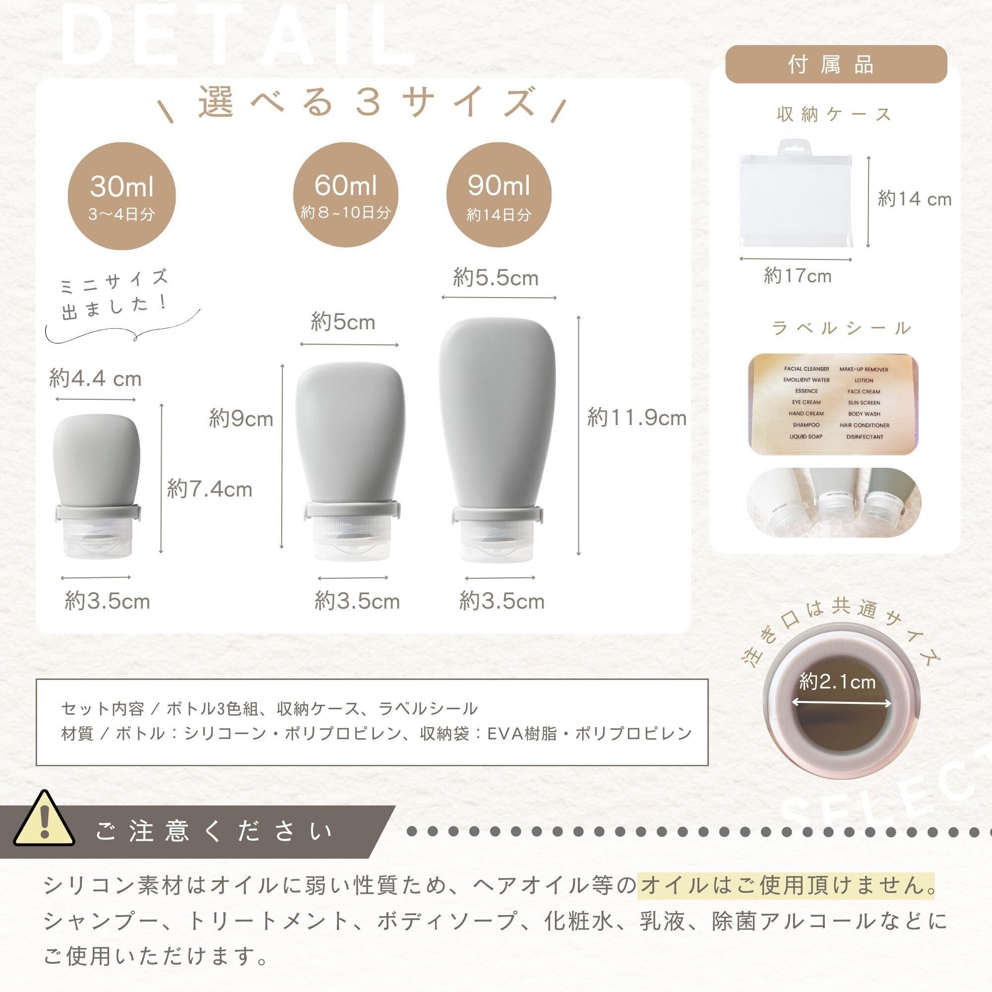 【新春セール】トラベルボトル セット【漏れない特殊構造】 旅行用 詰め替えボトル シャンプーボトル トラベルセット CEVOEL シリコン製3個セット 透明ポーチ付き (半透明, 30ml) | lcsshop