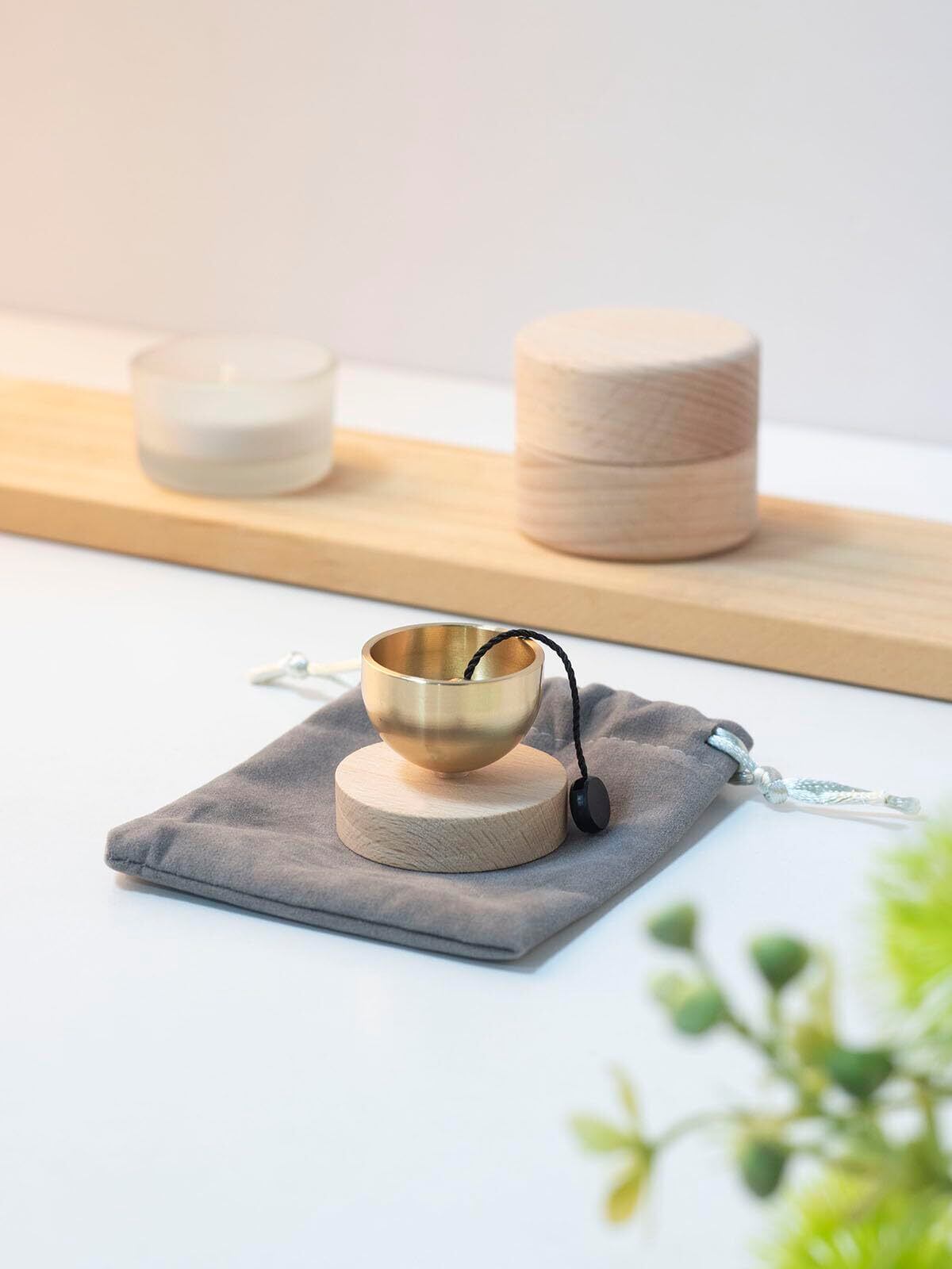 【おりんの良い音】美しい真鍮の輝き、ミニ仏壇にちょうど良いサイズ。澄み渡ったおりんの音は、余韻がすごく伸び、心地よい音の余韻が響く中、心を沈めて目を閉じる時間はきっと気持ちがいいはずです。