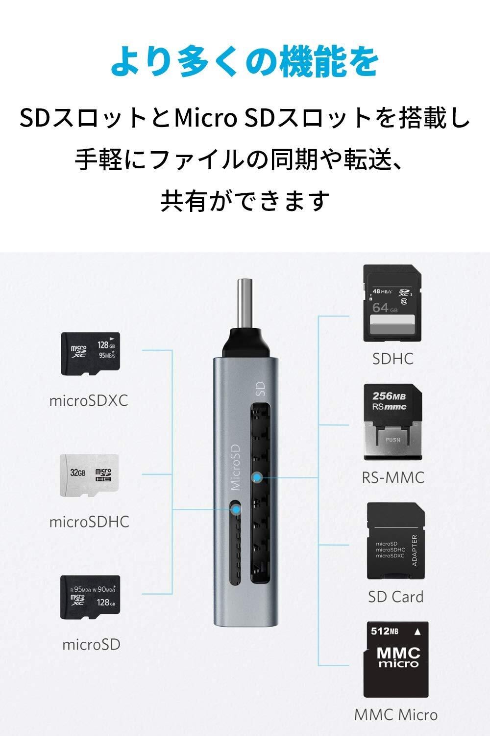 Anker USB-C 2-in-1 カードリーダー【SDXC/SDHC/SD/MMC/RS-MMC/microSDXC/microSDHC/microSD/UHS-Iカード対応】