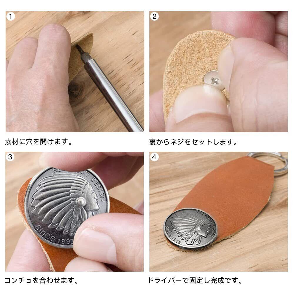 サムコス 12個セット コンチョ ボタン 20mm~32mm ねじ式 インディアン 十字架 ターコイズ 唐草 龍 五芒星 クラフト レザークラフト バッグ 財布 手芸 DIY 裁縫 飾りボタン 交換 取付簡単
