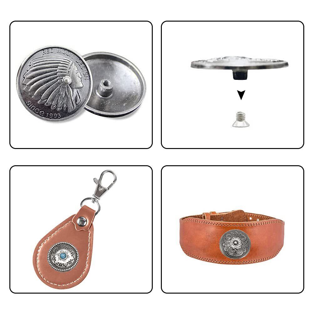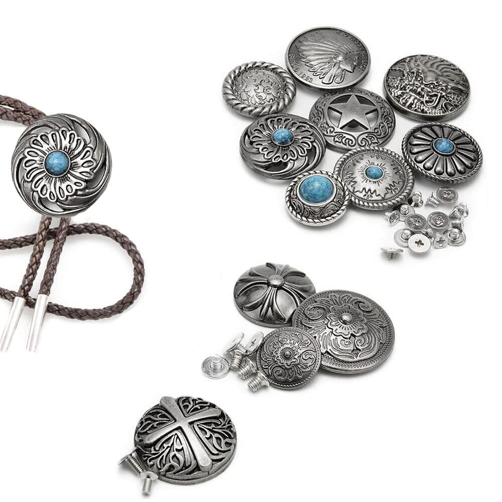 【在庫セール】サムコス 12個セット コンチョ ボタン 20mm~32mm ねじ式 インディアン 十字架 ターコイズ 唐草 龍 五芒星 クラフト レザークラフト バッグ 財布 手芸 DIY 裁縫 飾りボタン 交換 取付簡単 | lcsshop