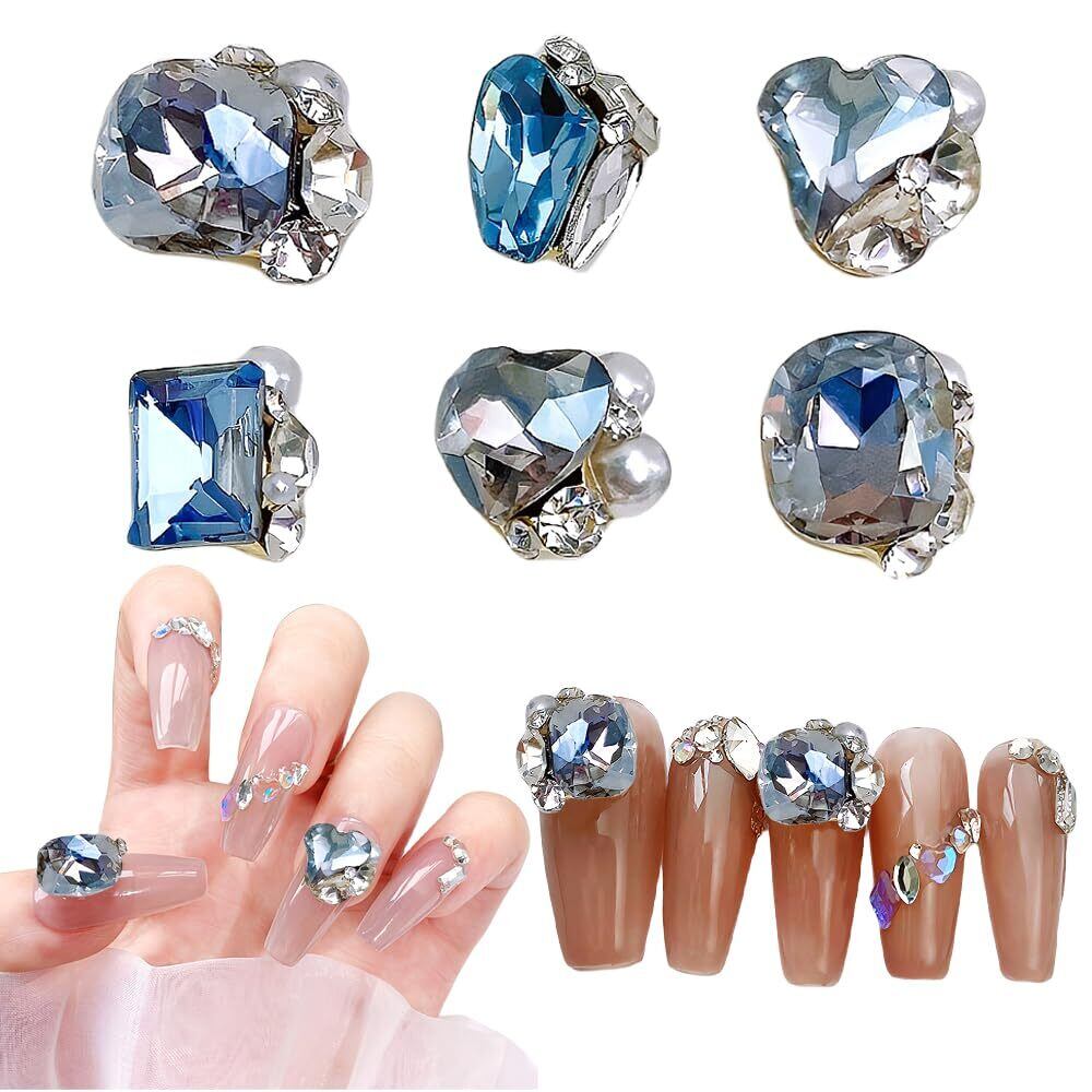 Chisafly ネイルストーン 大粒 ネイルパーツ ストーン クリスタル 宝石 キラキラ 立体 ハート スクエア 四角 レクタングル 6点セット (ライトブルー)