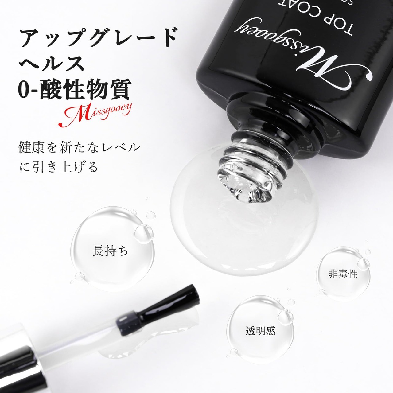 Missgooey ジェルネイル トップコート ベースコート ベースジェル ノンワイプ UV/LED対応 10ml 2本セット 拭き取り不要