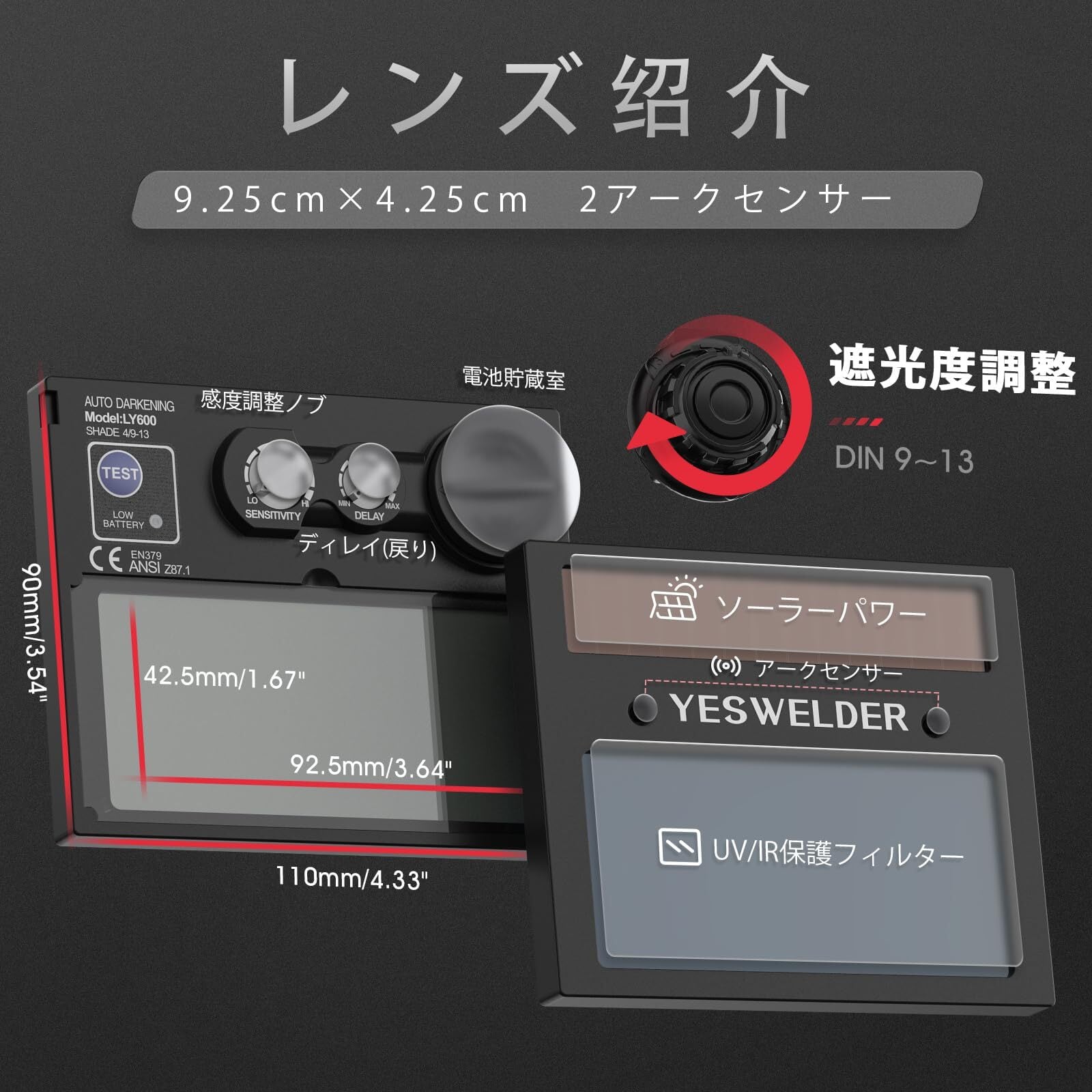 【新春セール】YESWELDER 溶接面 本当の色を映す ソーラーパワー 自動遮光溶接面 1/30000秒 遮光度4/5-9/9-13 TIG MIG ARC溶接に対応溶接ヘルメット | lcsshop