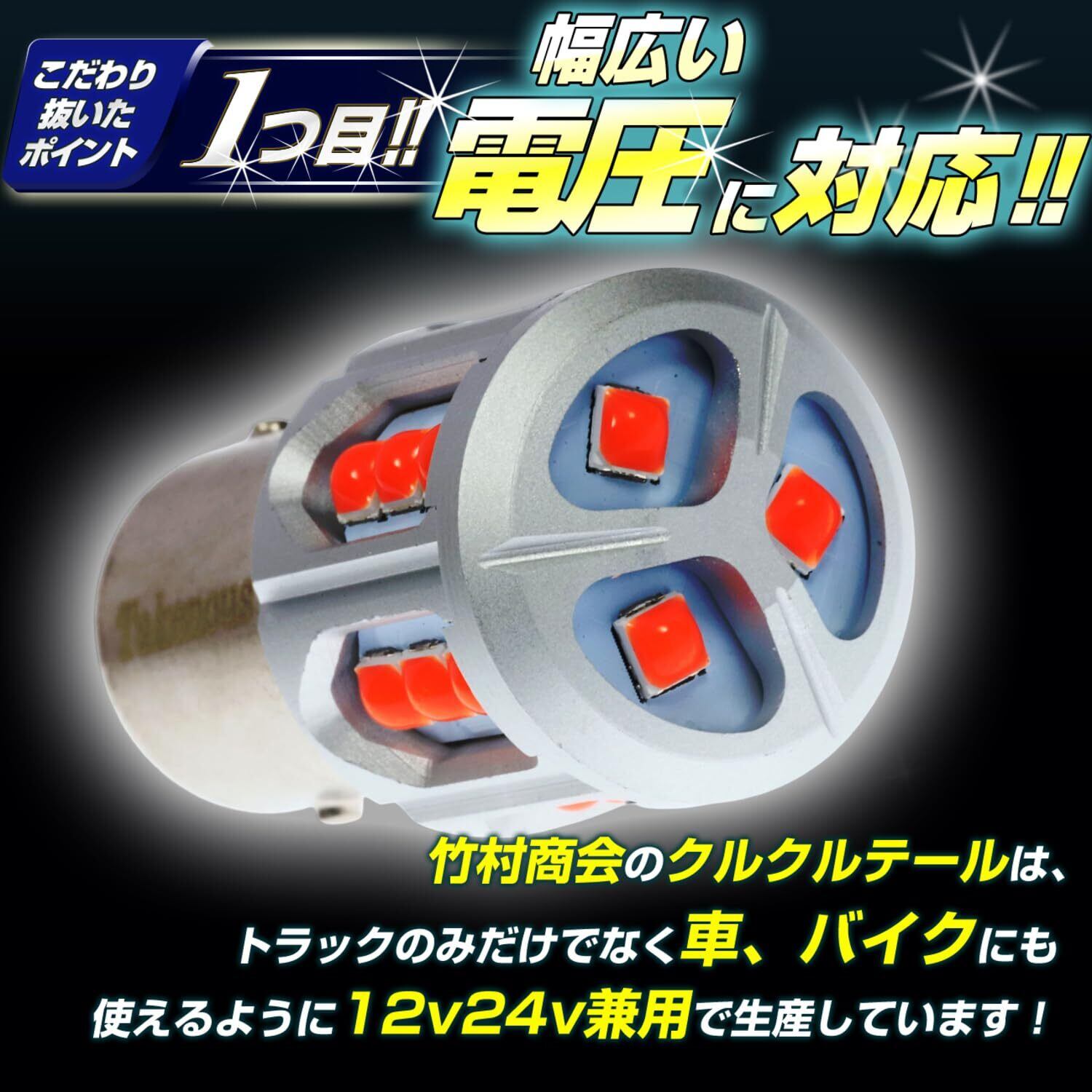 Takenous トラック野郎御用達 竹村商会 S25 LED ダブル クルクルテール レッド 12v 24v 180度段違いピン BAY15d