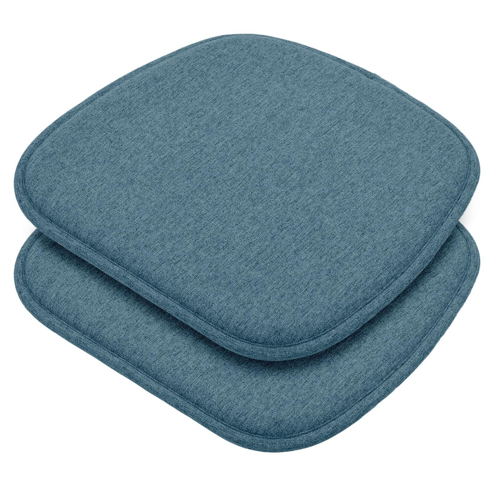 HAVARGO 椅子クッション 2枚セット 座布団 椅子用 お尻が痛くならない ダイニングチェアクッション 高反発 馬蹄型 滑り止め 通気 (ネイビー, 41X39)