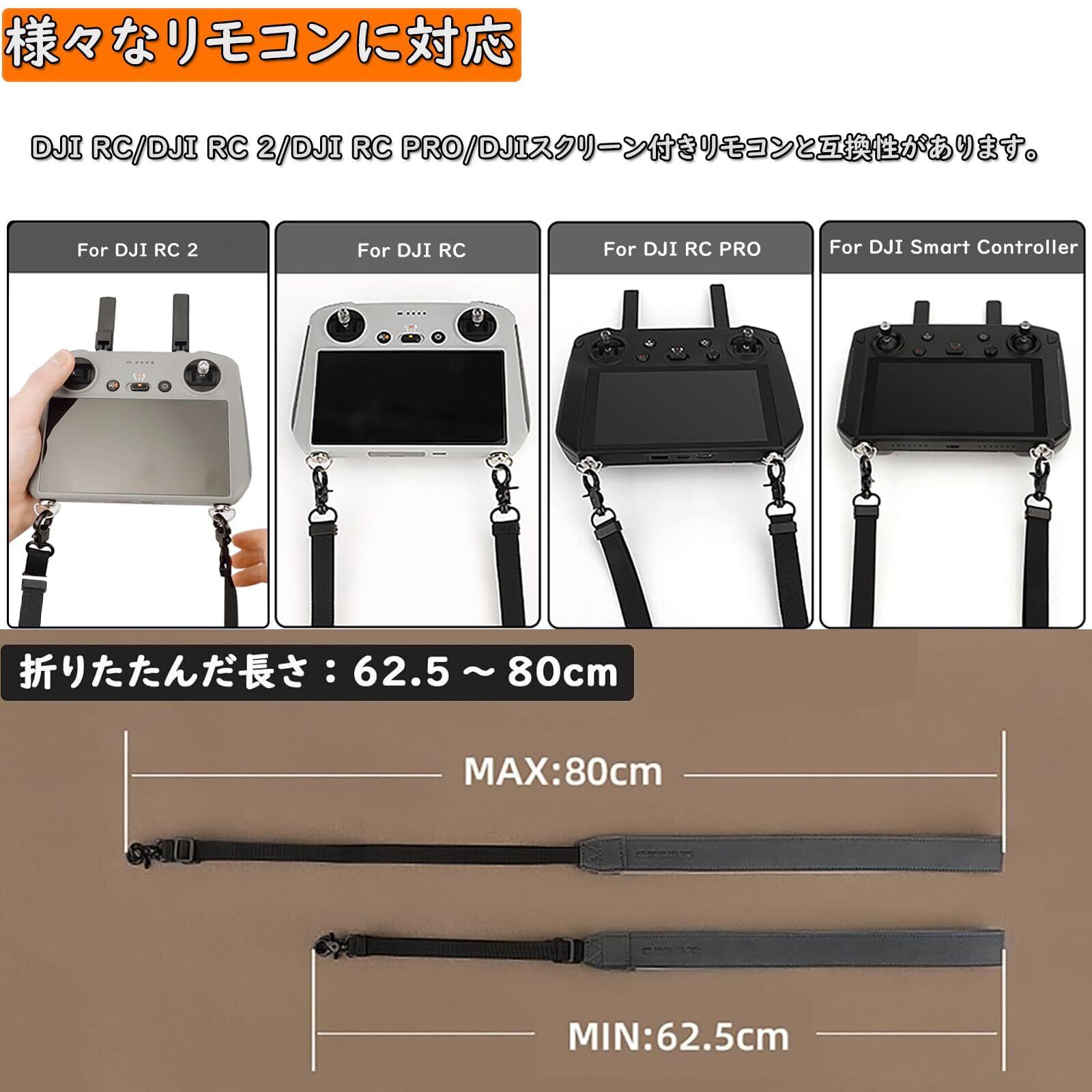 【dji Air 3Sストラップ 送信機 優れた材質&調整可能長さ】dji rc ストラップ /dji rc2 ストラップ/dji ストラップ は品質の革ストラップ、ロープロファイルマット質感、繊細な感触、精密な職人技、信頼性と耐久性、調整可能な長さ、折り畳まれた長さ約:62.5〜80センチメートル。高強度の金属のストラップ糸ロック、耐久性、タイトなインストール、より確実に使用してください