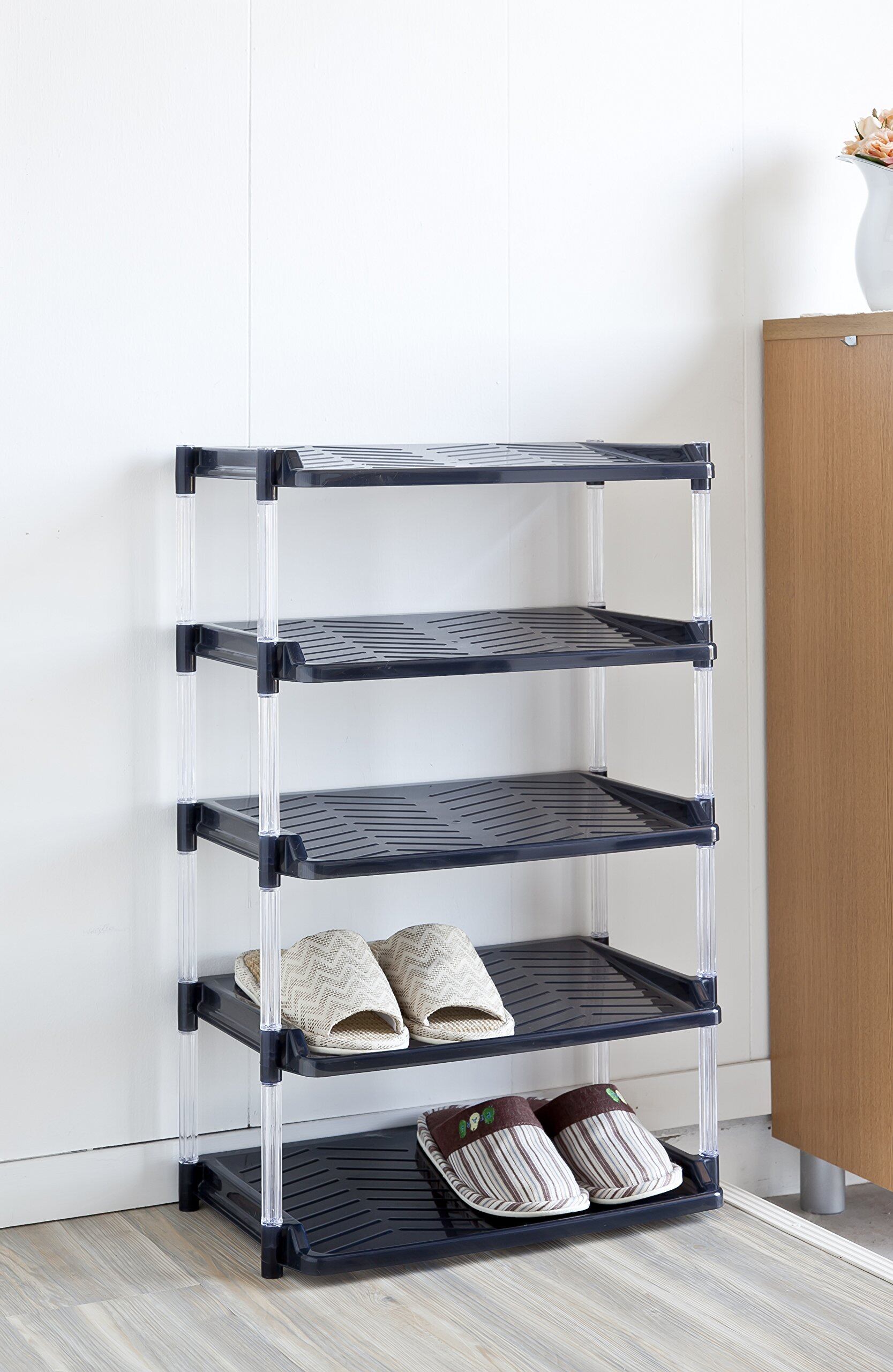 平和工業(Heiwa Kougyou) シューズラック クリスタル ワイド 5段 グレイ