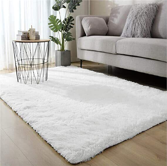 【特価セール】Kinganda カーペット ラグ ふわふわ 北欧 ラグマット 2畳 シャギー 滑り止め付 抗菌 防音 防ダニ 防カビ 折り畳み 柔らか 長方形 冷房 床暖房対応 オールシーズン (185x185cm, 白い) | lcsshop