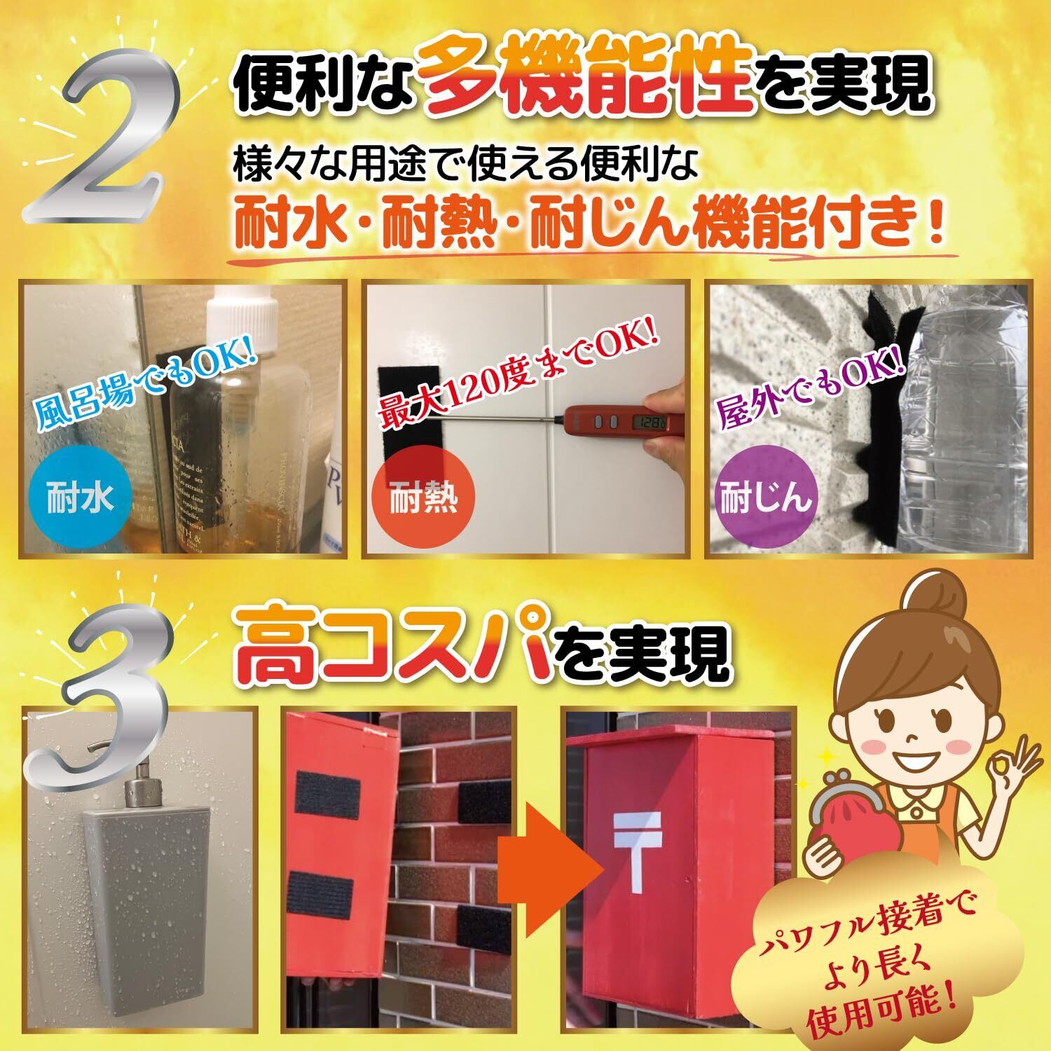 【Latuna】 面ファスナー 両面テープ マジック付きテープ パワフルパワピタ 超強力 5×10cm 15枚セット 防水 耐熱 防じん オス メス