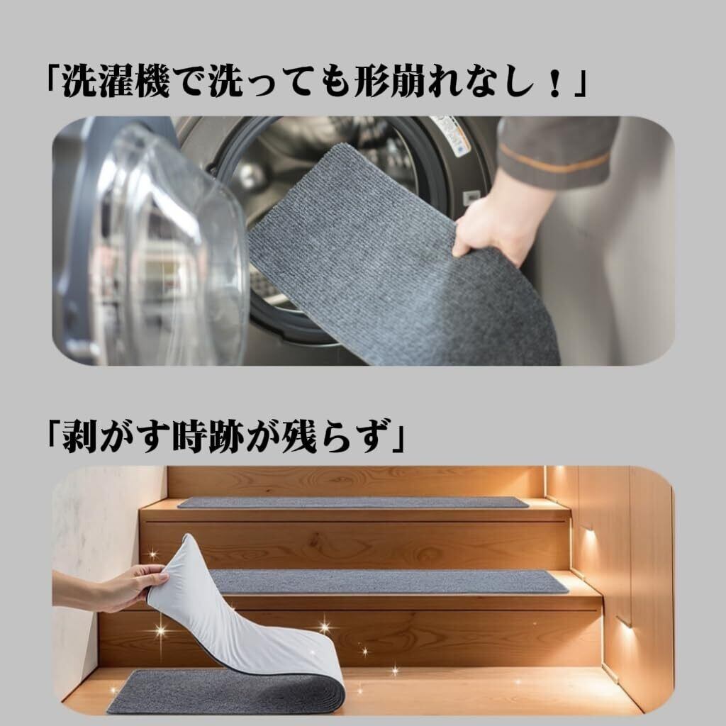 【強力滑り止め】滑りズレ防止吸着式階段マット、高密度カーペットで、高齢者やお子様の転倒防止に最適な滑り止め&衝撃吸収設計、転倒リスクを低減します。屋内、屋外、学校、工場、公共の床に適しており。
