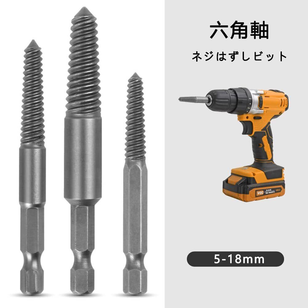 【使いやすい】ドリルビットを使用してネジの頭に深い穴を開け、ネジエクストラクターを反時計回りに損傷したネジに戻して外します。さびた、壊れたネジを数秒で簡単に取り外すことができます。