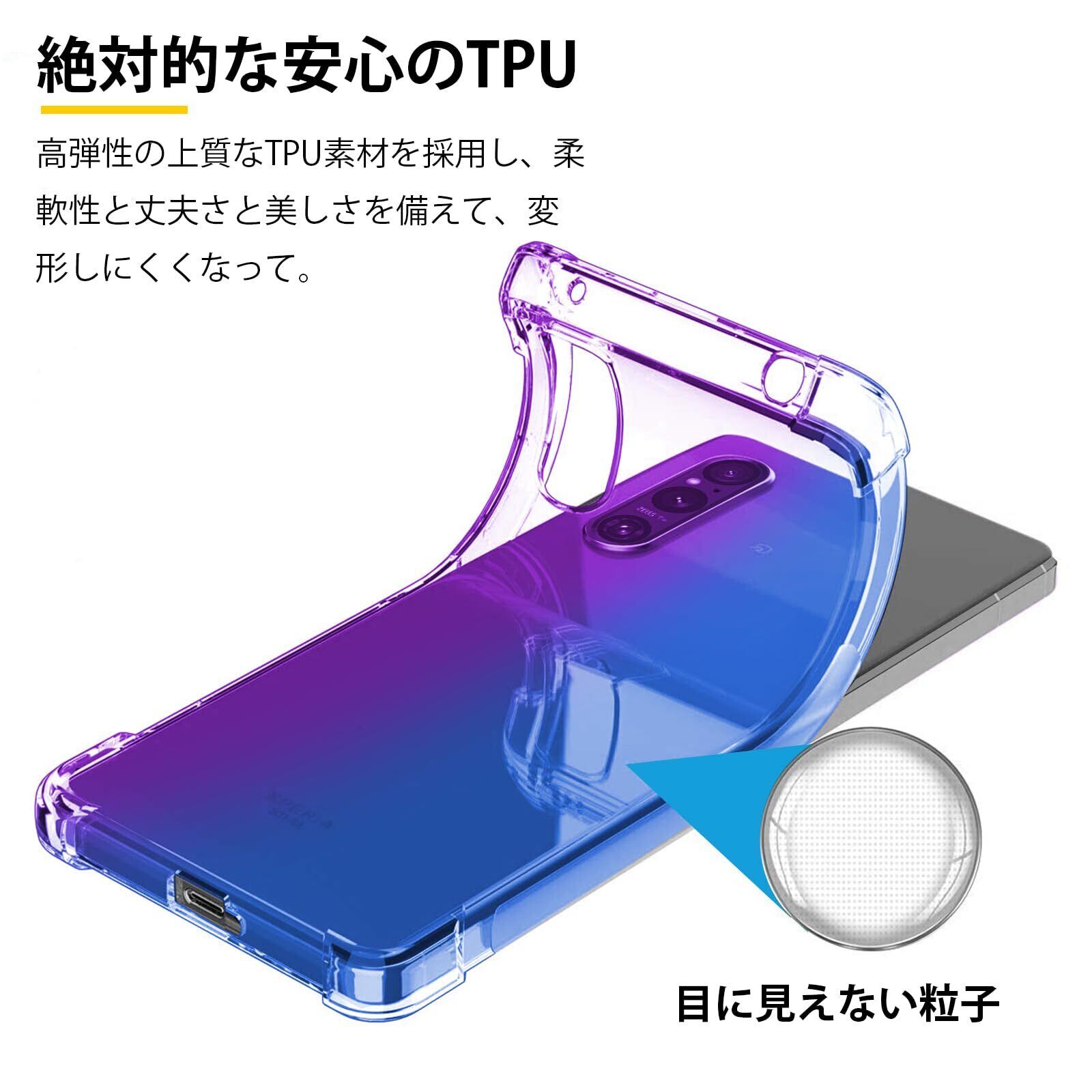 Xperia 1 VI ケース クリア TPU 薄型 軽量 グラデーション色 ケース 耐衝撃 衝撃吸収 カメラ保護 米軍MIL規格取得 滑り止め 黄変防止 Xperia 1 VI カバー 防塵 一体型 人気 携帯カバー(パープルブルー)