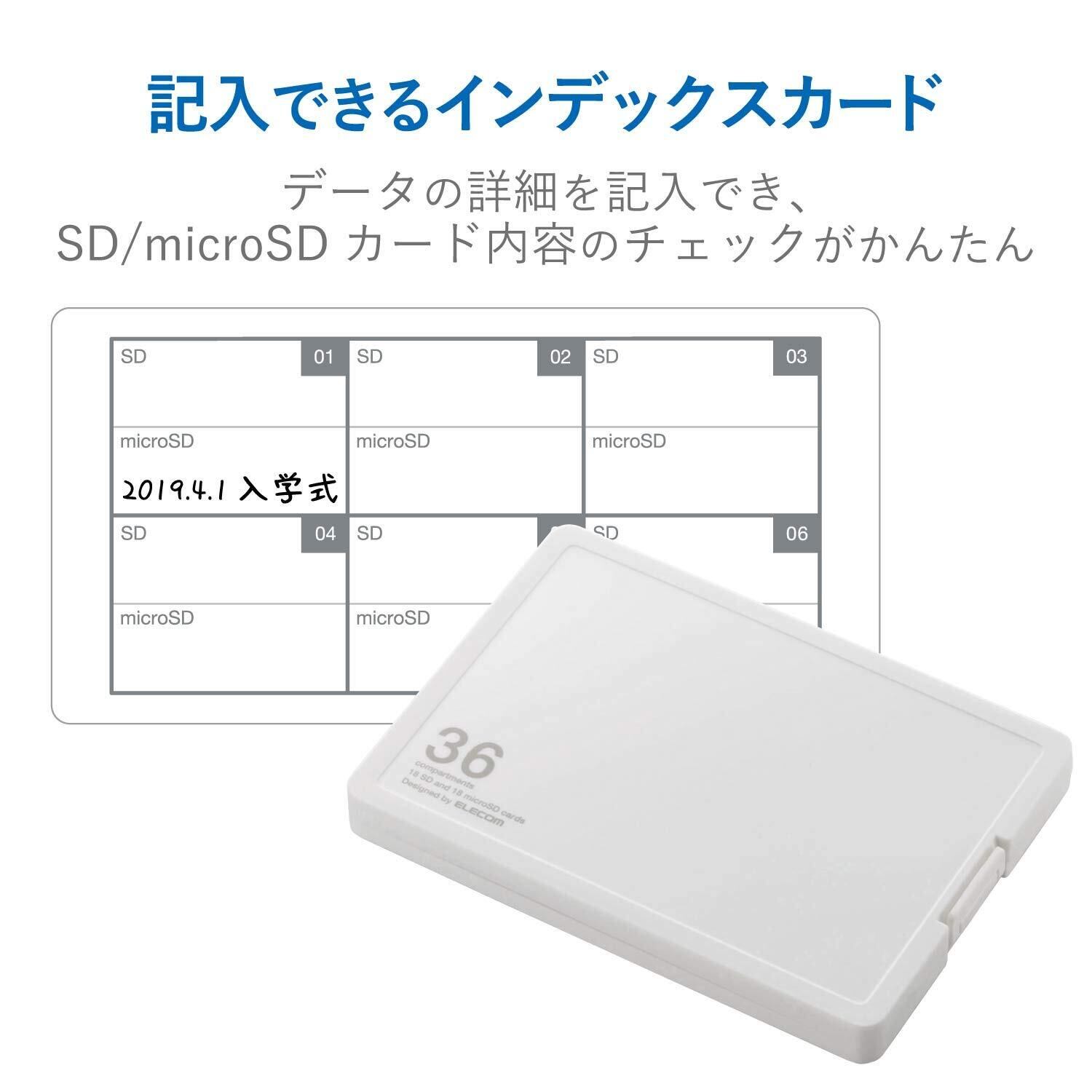 エレコム メモリカードケース SD ケース プラスチック SD18枚 + microSD18枚収納 ホワイト CMC-SDCPP36WH
