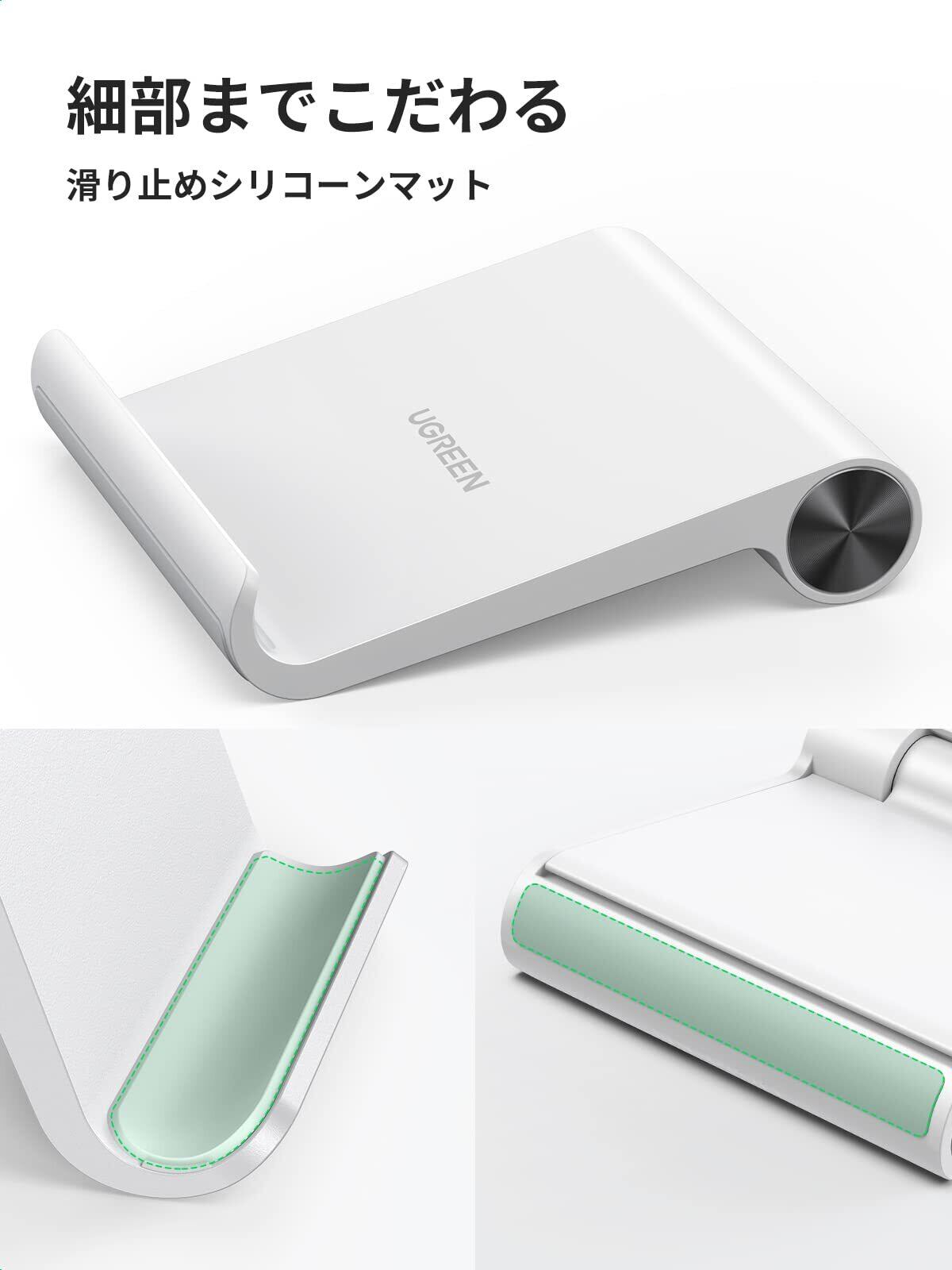 UGREEN スマホスタンド 卓上用 携帯電話スタンド Sサイズ ABS素材 iPhone 13/12/mini/Pro/ProMax/スタンド 折りたたみ式 100°角度調整可能 4~7.9インチのiPhone Androidスマホ タブレットに適用 (白)