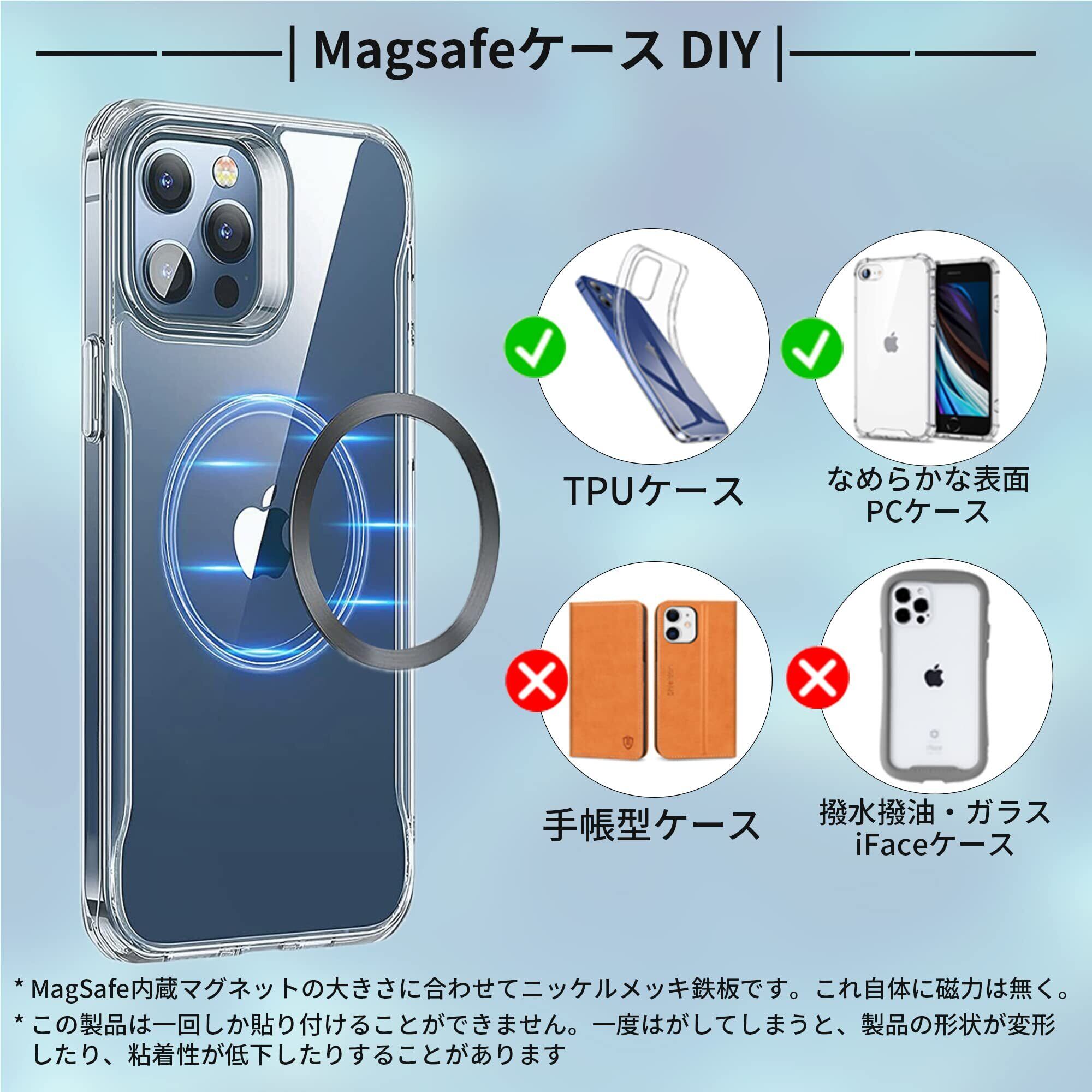 【Magsafe 用 磁気増強】内蔵マグネット同じサイズデザインです(46*54 mm)。お気に入りのMagsafe用 ケースをDIY