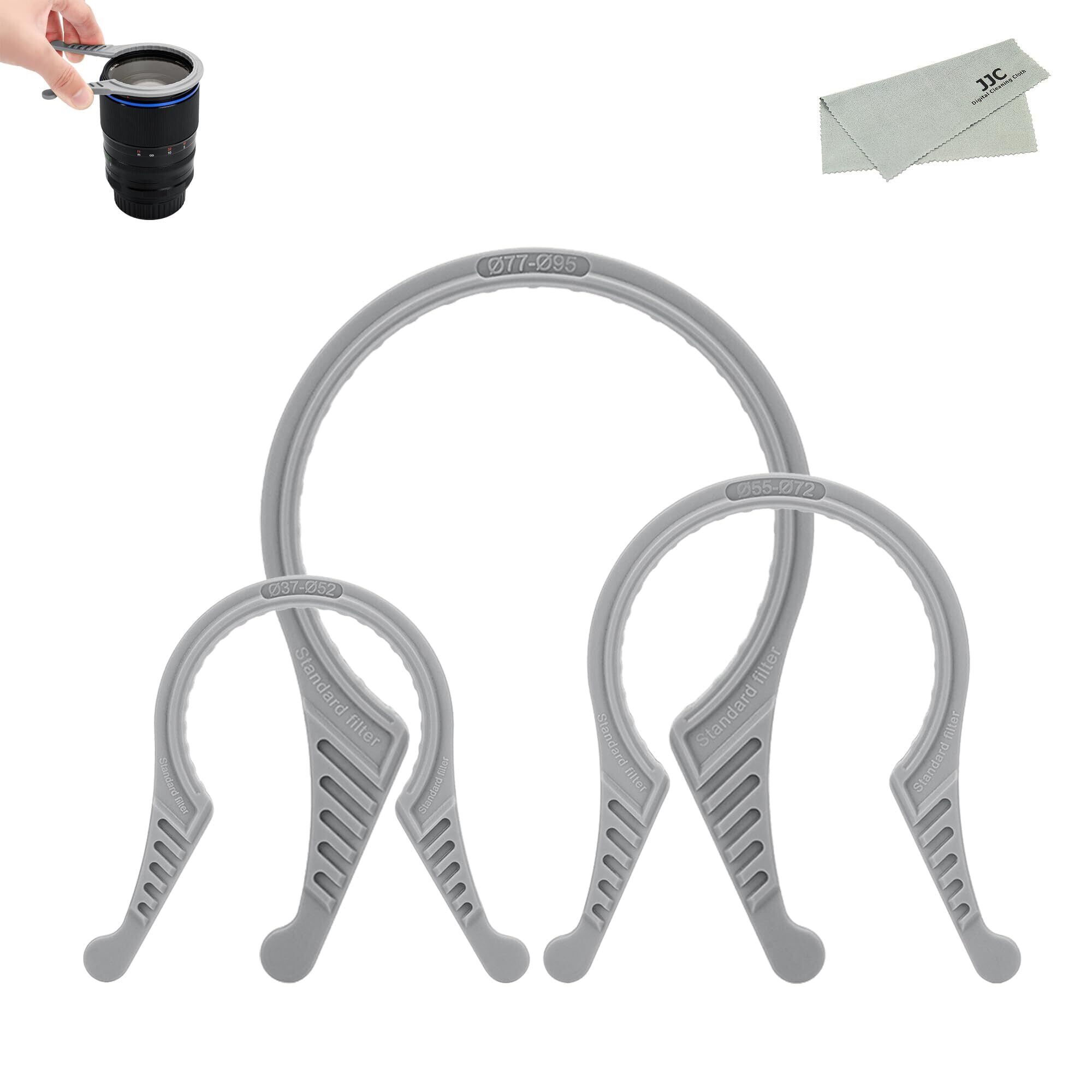 【アップグレード版】3枚入 JJC フィルターレンチ フィルタールーズ 両面設計 37-52mm 55-72mm 77-95mm スレッド CPL UV ND フィルター 適用 極薄フィルター&標準フィルター対応 レンズクロス 付属