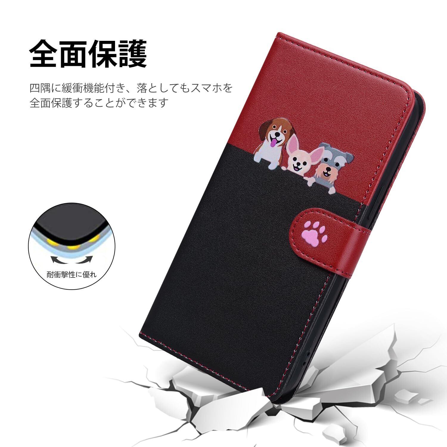 ZTE Libero 5G III ケース 手帳型 おしゃれ Libero 5G III A202ZT ケース 手帳型 お洒落 A202ZT ケース 本革 スマホケース 耐衝撃 libero5Giii libero5g3 リベロ5g3 リベロ5gⅱi 手帳型 ケース PUレザー スマホケース かわいい子猫犬柄 カバー カード収納 マグネット式 スタンド機能(ブラック)