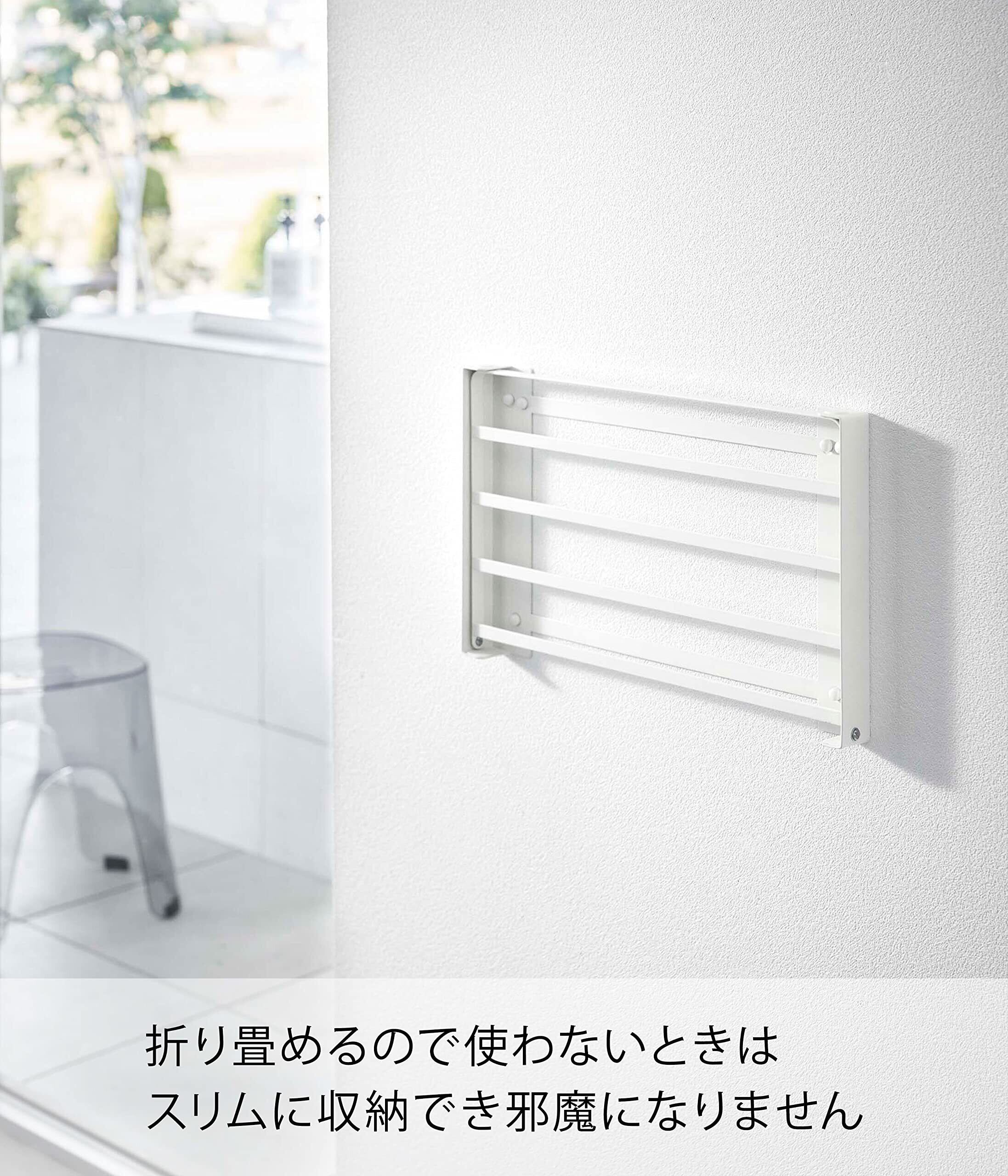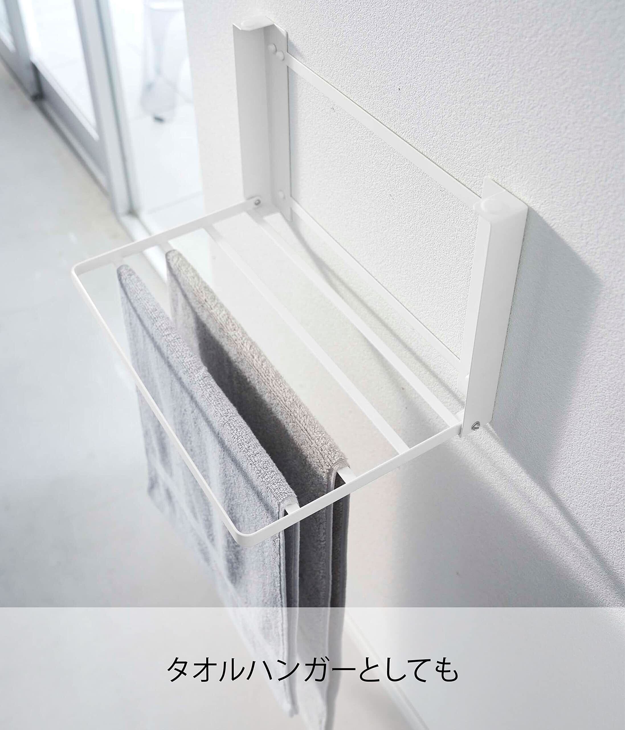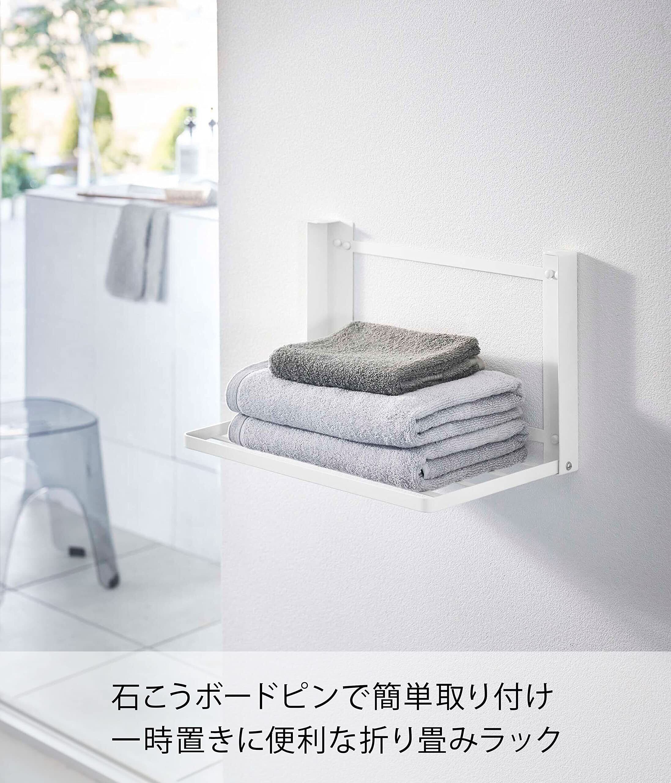 石こうボードピンで壁面に取り付け!入浴後の着替えやバスタオルなどを一時置きできる便利な折り畳みラック!使いたいときにサッと使える折り畳み式の棚。