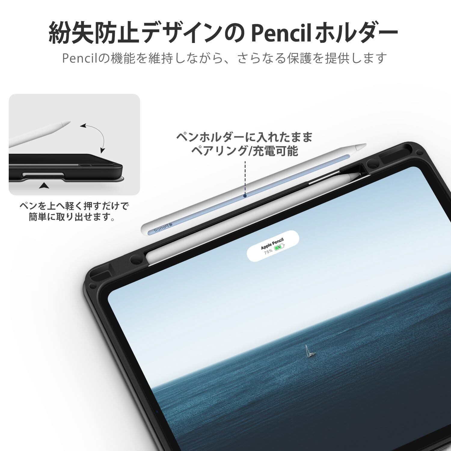 2、【紛失防止のペンホルダー】12.9インチiPad用のPencilスロットが内蔵されており、これを使えば、ペンをしっかりと保管し紛失を避けることができます。ペンホルダーに入れたまま Pencilのペアリングとワイヤレス充電を実現できます。ご注意:PencilとiPad本体は同梱しません。