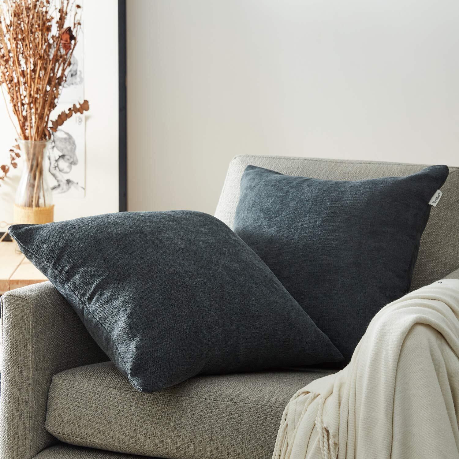 クッションカバー リネンっぽい 45×45cm 北欧 おしゃれ 綿麻 無地 ソファ背当て 装飾枕カバー 座布団カバー 濃いグレー 2枚セット(全10色)