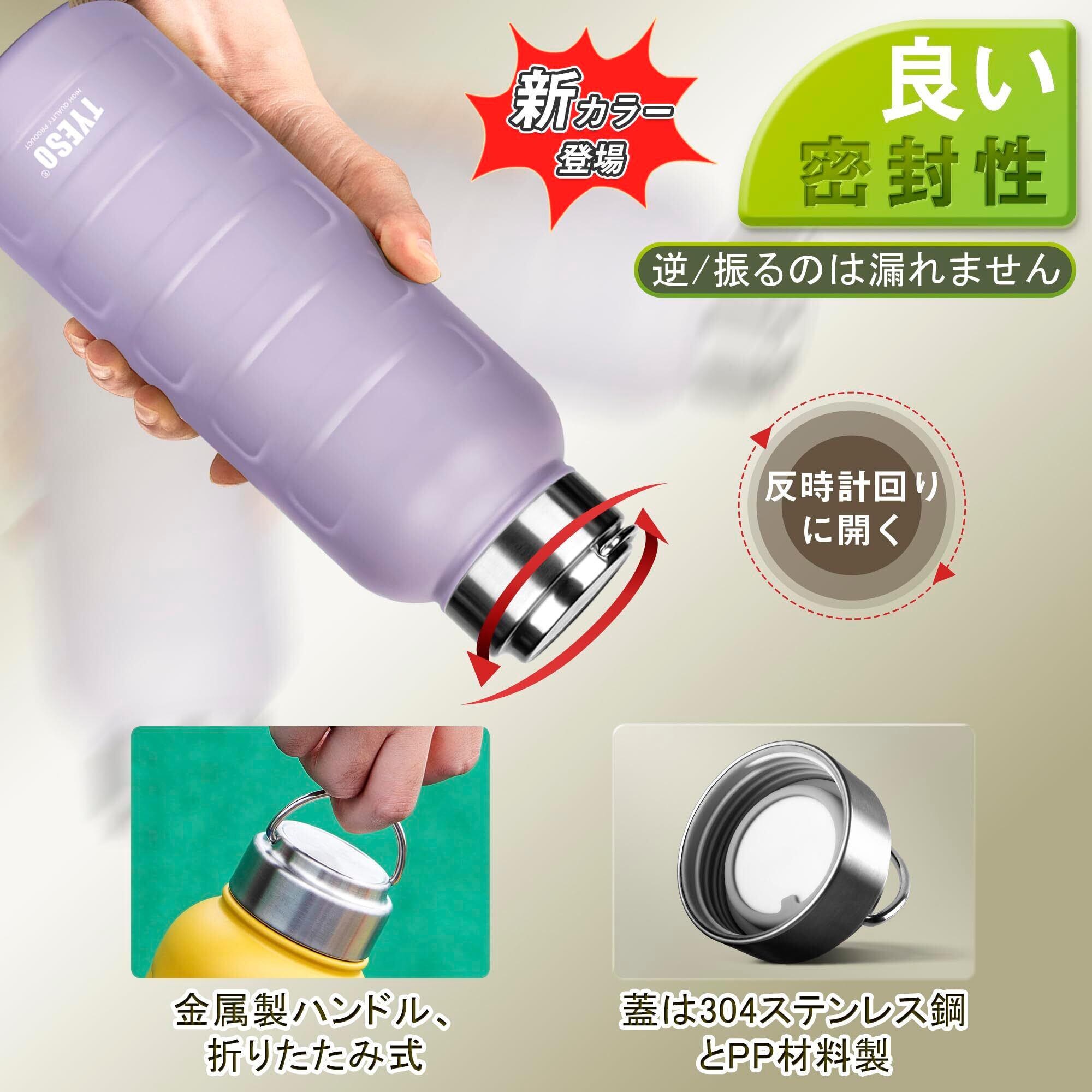 水筒 魔法瓶 マグボトル 真空 断熱 スポーツボトル 直飲み ステンレス 2重構造 広口 ハンドル付 大人 子供 0.75 / 1リットル (パープル, 1000ml)