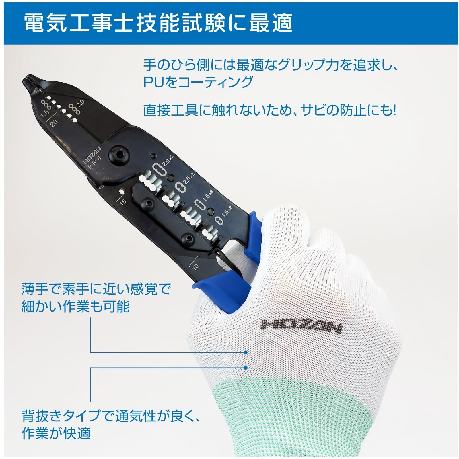 ホーザン(HOZAN) 電気工事士技能試験用グローブ(3双入) 適度な滑り止めで作業性が向上 背抜きタイプで長時間の作業も快適に 工具のサビ防止に サイズ:M/色:緑 Z-382-M