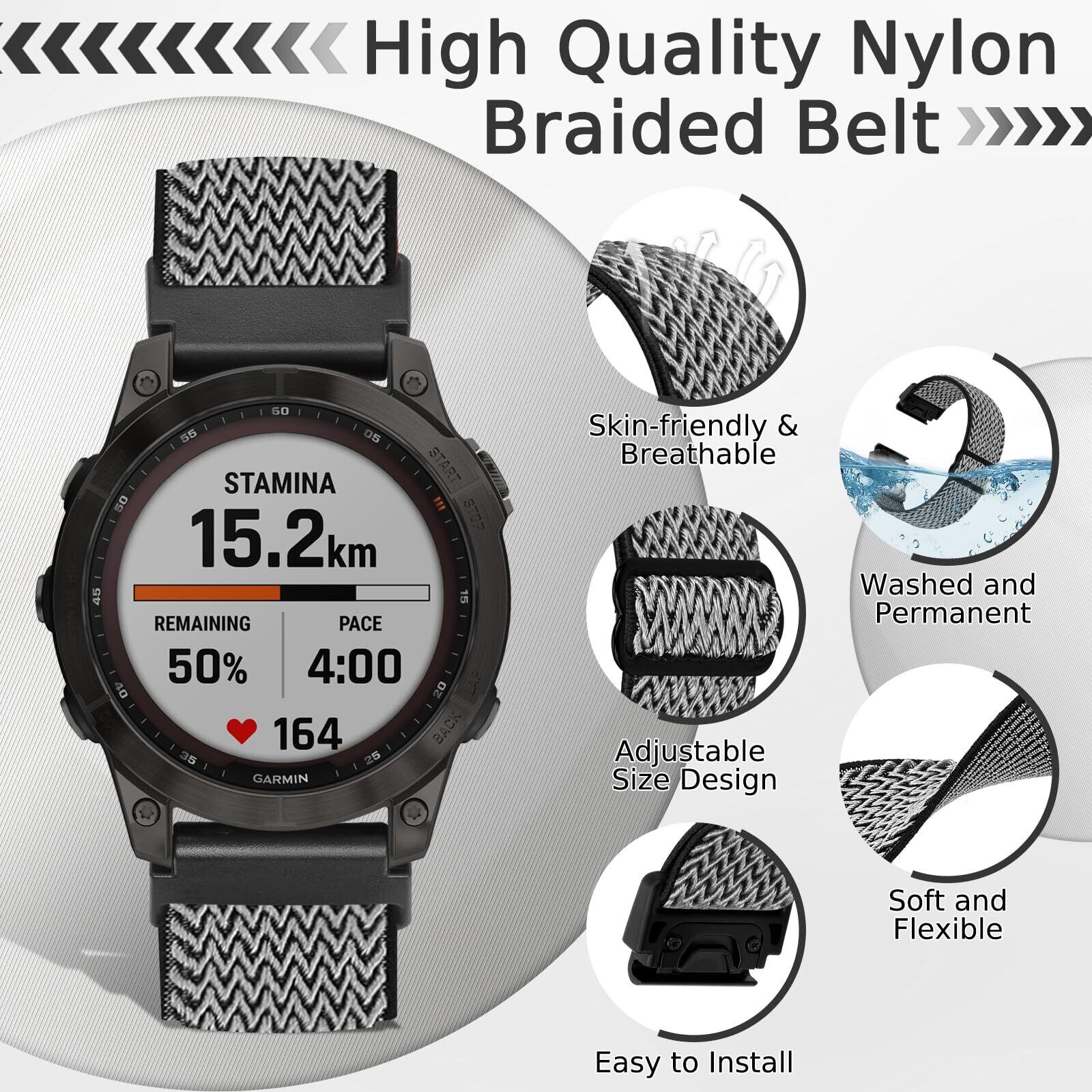 【ガーミンウォッ弾性のあるベルト】コネクタの新しいアップグレード,1秒で取り付け、取り外しが可能,より便利に、より簡単に。釣り、ランニング、ジム、日常生活など、幅広いシーンで活躍します。 【快適&高弾性】ガーミンストラップは高弾性ナイロン素材を採用。ゴルフ、野球、キャンプ、ハイキング、スキー、スケート、自転車、釣り、登山、旅行、フィールドトレーニングなどのアウトドアスポーツに最適です。弾性のあるデザインは、快適さを保ちながら、お好みの長さに調節しやすくなっています。