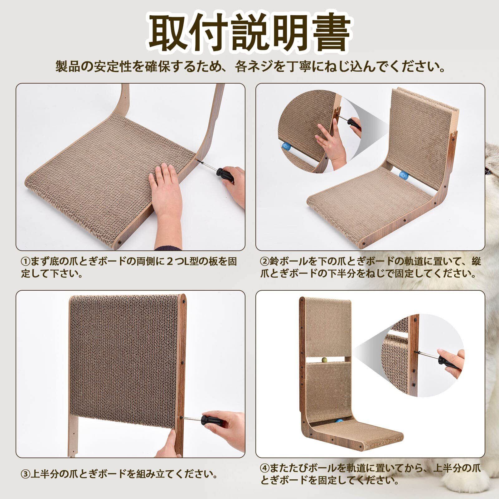 【猫のおもちゃ付き】このL字爪とぎに2つの軌道が設置しており、猫ちゃんが大好きなまたたびと鈴のボールがそれぞれ軌道に取り付け、取れそうで取れない、猫ちゃんが誤食する心配はありません。がりがりしながらボール遊びもでき、ストレスも十分発散できます。